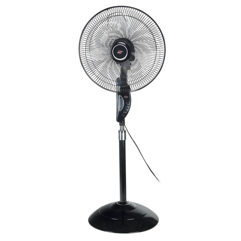 قابلیت تنظیم آسان زاویه وزش باد به صورت جغجغهای و قابلیت تنظیم گردش افقی هم در این مدل وجود دارد تا بتوانید کاملا متناسب با شرایط وزش باد کارکرد آن را تنظیم کنید. گارد محافظ میلهای و مشبک این محصول باعث میشود گردش پرسرعت پرهها موجب ایجاد مشکلی نشوند و ایمنی دستگاه حفظ شود. این پنکه برای فضاهای جمعوجور مانند اتاق خواب یا اتاق مطالعه گزینهی بسیار خوبی محسوب میشود.