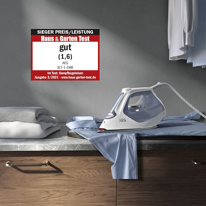اتو بخار آ.ا.گ مدل SI7-1-4WB با قدرت ۲۰۰۰ وات و ظرفیت مخزن آب ۳۷۰ میلیلیتر، عملکرد بخار مداوم ۴۵ گرم در دقیقه و عملکرد بخار لحظهای ۲۱۰ گرم در دقیقه را ارائه میدهد. این مدل مجهز به سیستم ضدچکه، عملکرد بخار عمودی، عملکرد اسپری آب و سیستم خاموشی خودکار پس از ۸ دقیقه عدم استفاده است. طراحی ارگونومیک با سیم ۲ متری و صفحهنمایش Glissium، استفاده راحت و کارآمد را فراهم میکند.