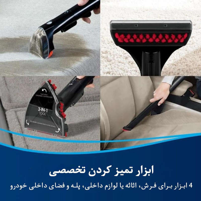 | سایر توضیحات | لکه های سخت را برای همیشه از بین می برد: فرمول BISSELL Spot & Stain + Oxygen Boost لکه های سخت را برای همیشه از بین می برد. به سرعت انواع آشفتگی های داخل و اطراف خانه را پاک می کند.سیستم دو مخزن: BISSELL MultiClean Spot & Stain Carpet Cleaner شامل یک مخزن آب قابل جابجایی برای پر کردن و تخلیه آسان است. سیستم دو مخزن اجازه می دهد تا با آب تمیز، تمیز شود در حالی که کثیفی و در مخزن دیگری ذخیره می شود.فناوری موج گرما: به حفظ دمای ثابت آب در حین تمیز کردن کمک می کند. این بهترین سیستم تمیز کننده ما برای سخت ترین لکه ها و بوها است – حتی بوی بد را از بین می برد. پس از اتمام تمیز کردن، مخزن آب کثیف به راحتی تخلیه می شود. چندین سطح را تمیز می کند: پاک کننده لکه های BISSELL دارای 4 ابزار تخصصی است و به سرعت آلودگی های روی فرش، موکت، اثاثه یا لوازم داخلی، پله ها و فضای داخلی خودرو را پاک می کند. همچنین می توان از آن بر روی سطوح نرم مانند کاناپه، مبل، تشک و غیره استفاده کرد. استفاده آسان: طراحی جمع و جور آن نگهداری آن را در مکان های مناسب مانند کمد یا حتی زیر سینک آسان می کند. قابل حمل و سبک است. دارای شیلنگی به طول 2.2 متر برای تمیز کردن بیشتر مناطق مختلف خانه و ماشین شما. دارای دو مخزن : حجم مخزن آب 1/1 لیتر، حجم مخزن بازیابی 1/4 لیتر ، طول شیلنگ 2/2 متر ،سطح صدا 74 دسی بل .فرمول BISSELL Spot & Stain + Oxygen Boost این دستگاه لکه ها و انواع لکه های سخت را برای همیشه از بین می برد. به سرعت انواع آلودگی های داخل و اطراف خانه را پاک می کند. BISSELL MultiClean Spot & Stain Carpet Cleaner شامل مخزن آب قابل جابجایی برای پر کردن و تخلیه آسان است. سیستم دو مخزن اجازه می دهد تا با آب تمیز تمیز شود در حالی که کثیفی و کثیفی در مخزن دیگری ذخیره می شود. به حفظ دمای ثابت آب در حین تمیز کردن کمک می کند. این بهترین سیستم تمیز کننده ما برای سخت ترین لکه ها و بوها است - حتی بوی بد را از بین می برد . |