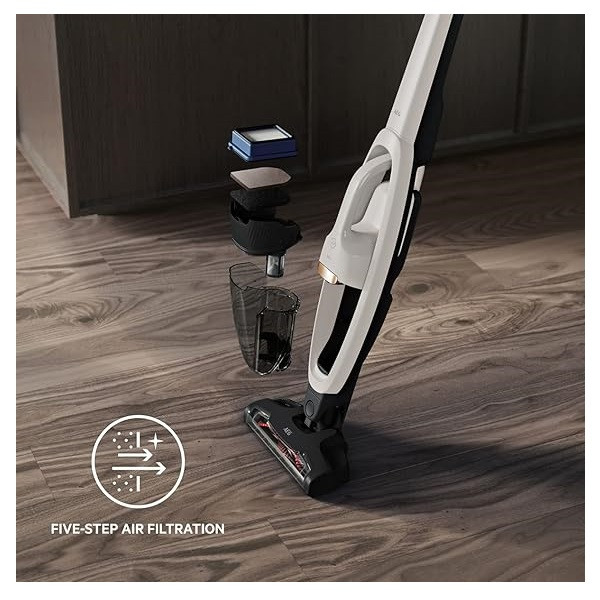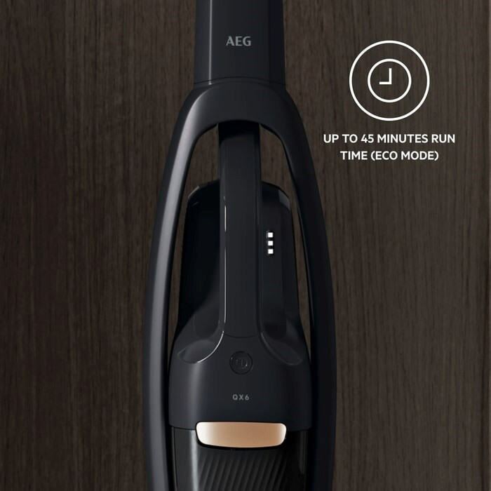 جاروشارژی آ ا گ سری QX6 یکی از توانمندترین دستگاهها در نظافت محیط مورداستفاده شما است. میزان مکندگی جاروشارژیها بسته به نوع موتور به کار رفته در آنها و همچنین مکانیزم ساخت هریک متفاوت است. در این محصول خوش ساخت میزان مکش گرد و غبار و آلودگیها حتی پس از پر شدن مخزن گرد و غبار نیز به قوت خود باقی خواهد ماند. گفتنی است این میزان توان مکش بر طبق استاندارد DMT تست و تایید شده است. به کمک جاروشارژی آ ا گ به راحتی قادر خواهید بود به جنگ با آلودگیها و گرد و غبارهای منزل خود رفته و محیط پیرامون خود را با بالاترین دقت و به آسانی نظافت کنید. همچنین فیلتر هوای 5 لایه به افرادی که دچار ناراحتیهای تنفسی هستند این امکان را میدهد تا آنها هم بتوانند از این دستگاه استفاده کنند، این فیلتر موجب جذب 99.99% ذرات و گرد وغبار میشود و از بازگشت آنها به محیط جلوگیری میکند. معضل ضعف باتری در جاروشارژیها بزرگترین دغدغه کاربران این محصولات است. اما برند آ ا گ در خط تولید جاروشارژی آ ا گ سری QX6 متفاوت عمل کرده است. برخورداری محصول از باتری قدرتمند لیتیوم یونی با ولتاژ 18 ولتی یکی از نقطه قوتهای اصلی آن محسوب میشود. چه فرایند نظافتی سبک و سریع و چه نظافتی طولانی مدت و سنگین را مدنظر داشته باشید، با بهرهگیری باتری این دستگاه از بازدهی زمانی 45 دقیقهای عملکرد مطلوب در هردو شرایط را با دستیابی بهترین نتیجه ممکن میسر میکند. هربار شارژ کامل باتری دستگاه در مدت زمان 4 الی 5 ساعت به انجام میرسد.