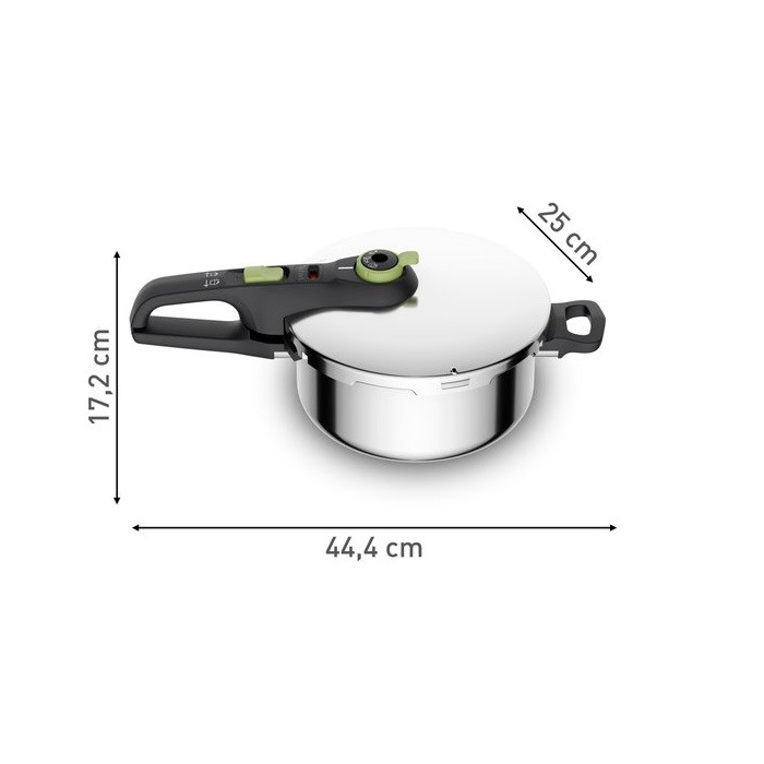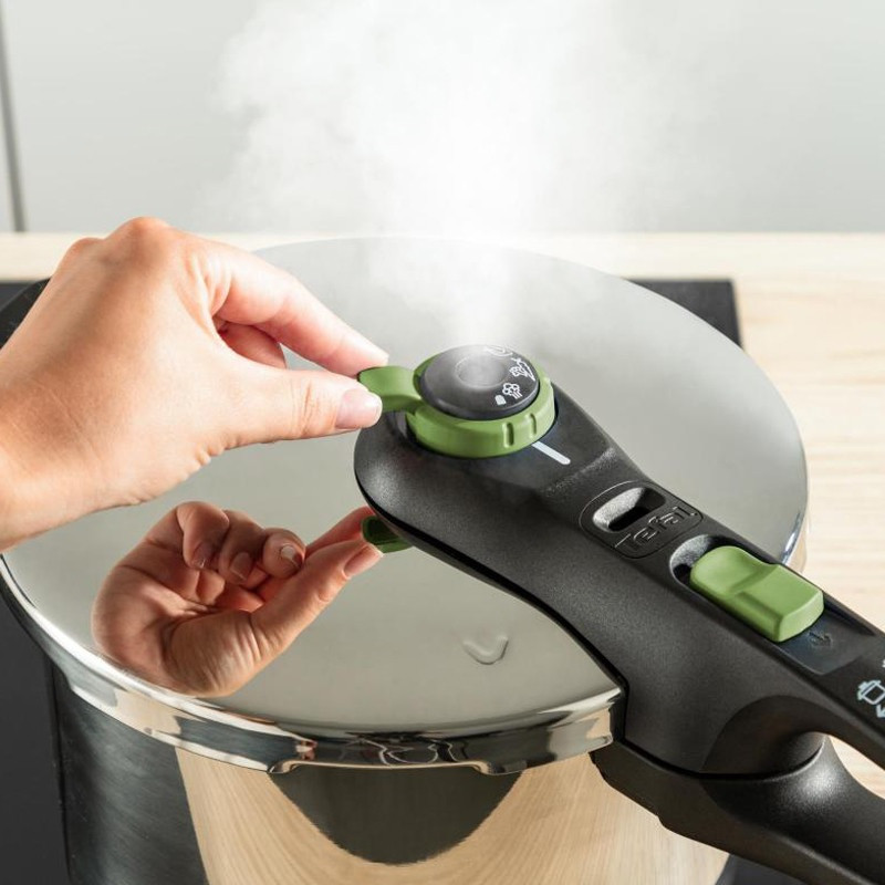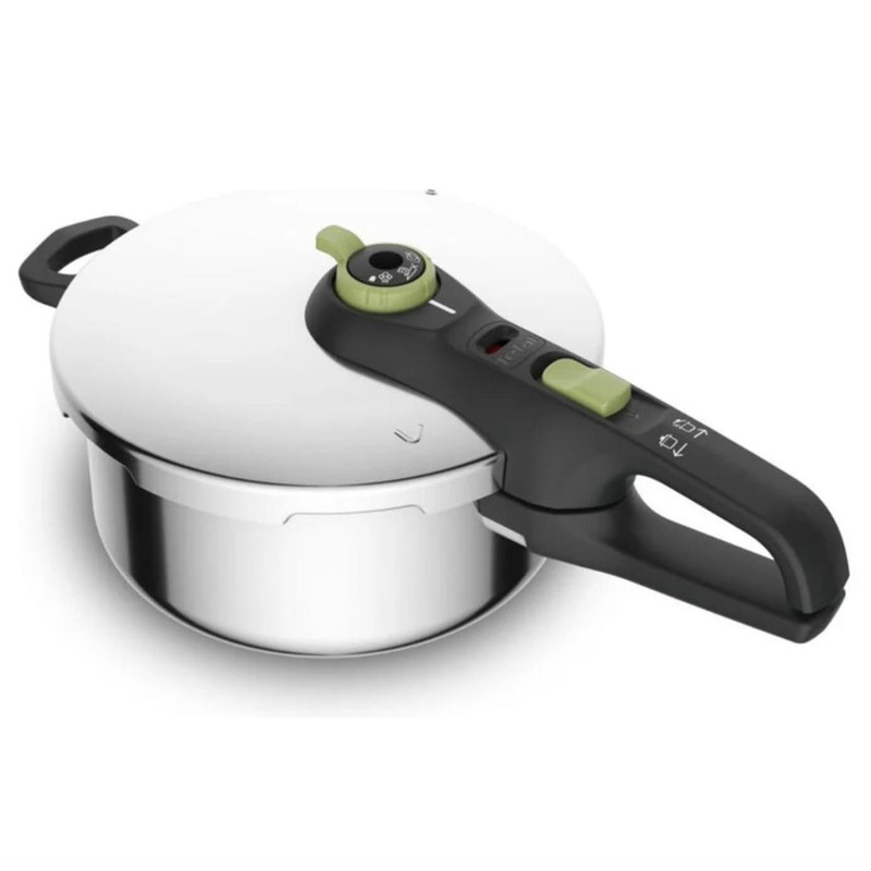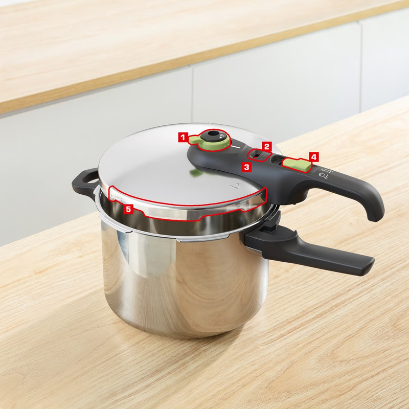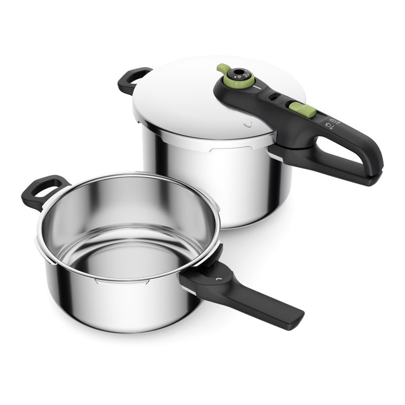 زودپز دوقلو تفال مدل Secure Trendy با دو قابلمه ۶ و ۴ لیتری، مناسب برای پخت سریع، ایمن و متنوع انواع غذاهای خانگی است.