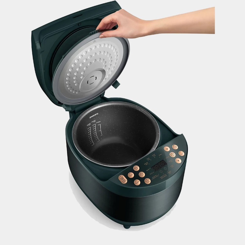 پلوپز فیلیپس 4518 یک دستگاه پیشرفته و باکیفیت است که میتواند به عنوان یک وسیلهی همهکاره در آشپزخانه عمل کند. با وجود قابلیتهای پیشرفته مانند تایمر قابل تنظیم، پخت با تأخیر، حالتهای پخت چندگانه و دیگ نچسب، این دستگاه به کاربران امکان میدهد تا با سهولت بیشتری آشپزی کنند. همچنین، طراحی مدرن و مقاوم آن، همراه با قابلیت گرم نگهداشتن غذا برای مدت طولانی، این پلوپز را به یکی از بهترین گزینههای موجود در بازار تبدیل کرده است. پلوپز فیلیپس 4518 از لحاظ طراحی دارای ساختاری مدرن، کاربرپسند و مقاوم است. طراحی زیبا و منحصر به فرد این دستگاه به گونهای است که میتواند به راحتی با دکوراسیون هر آشپزخانهای هماهنگ شود. دیگ داخلی این دستگاه دارای روکش نچسب و ضد خش است که هم مقاومت بالایی در برابر خوردگی و خط و خش دارد و هم تمیز کردن آن بسیار آسان است. این ویژگی به خصوص در جلوگیری از چسبیدن غذا و شستشوی سریع آن مؤثر است. ظرفیت این دستگاه 1.8 لیتر است که برای پخت غذا برای 4 تا 8 نفر مناسب است. این ظرفیت برای خانوادههای متوسط و حتی مهمانیهای کوچک کارآمد خواهد بود. پلوپز فیلیپس 4518 با توان مصرفی 980 وات، یکی از دستگاههای پربازده در بازار است. این توان باعث میشود که پخت برنج و غذاهای دیگر در مدت زمان کوتاهی انجام شود و مصرف انرژی بهینه نیز به کاربران کمک میکند تا هزینههای برق را کاهش دهند. پخت برنج: این پلوپز به گونهای طراحی شده که برنج را با بهترین کیفیت پخته و دانههای برنج را به صورت کاملاً جدا و پخته شده ارائه میدهد. حالتهای پخت چندگانه: این دستگاه دارای حالتهای پخت متنوعی است که به کاربر اجازه میدهد علاوه بر پخت برنج، از دستگاه برای بخارپز کردن سبزیجات، تهیهی کیک، گرم کردن غذا و حتی پخت سوپ و خورش استفاده کند. این ویژگی چندمنظوره بودن، یکی از نقاط قوت اصلی این دستگاه به شمار میآید.