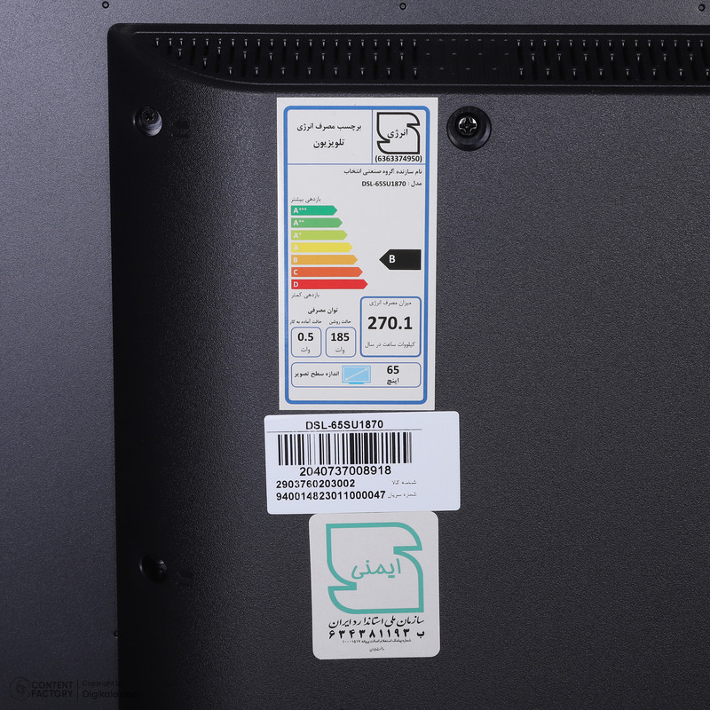 دوو DSL-65SU1870 از نظر درگاههای ارتباطی، مجموعهی کاملی را ارائه میدهد که نیازهای اتصال به انواع دستگاههای مدرن و حتی کنسولهای بازی نسل نهم را به خوبی پوشش میدهد. سه پورت HDMI که حداقل یکی از آنها باید از استاندارد HDMI 2.1 برای پشتیبانی کامل از 4K@120Hz پشتیبانی کند، امکان اتصال همزمان چندین دستگاه مانند کنسول بازی PS5 یا Xbox Series X، دستگاه پخش بلوری 4K، لپتاپ و ستاپباکس را با بالاترین کیفیت ممکن فراهم میکنند. دو پورت USB هم برای اتصال حافظههای فلش، هارد اکسترنال یا سایر لوازم جانبی در نظر گرفته شدهاند. ورودی آنتن (RF) برای اتصال به آنتن هوایی و پورت LAN برای اتصال سیمی پایدار به شبکه، دیگر درگاههای این تلویزیون را تشکیل میده. پشتیبانی از وایفای و بلوتوث هم اتصالات بیسیم را برای دسترسی به اینترنت و اتصال دستگاههایی مانند ساندبار یا هدفون بیسیم تکمیل میکنند. این تلویزیون با گرید انرژی B، مصرف انرژی نسبتا بهینهای دارد که با توجه به ابعاد بزرگ و امکانات پیشرفتهی آن، قابل قبول است.