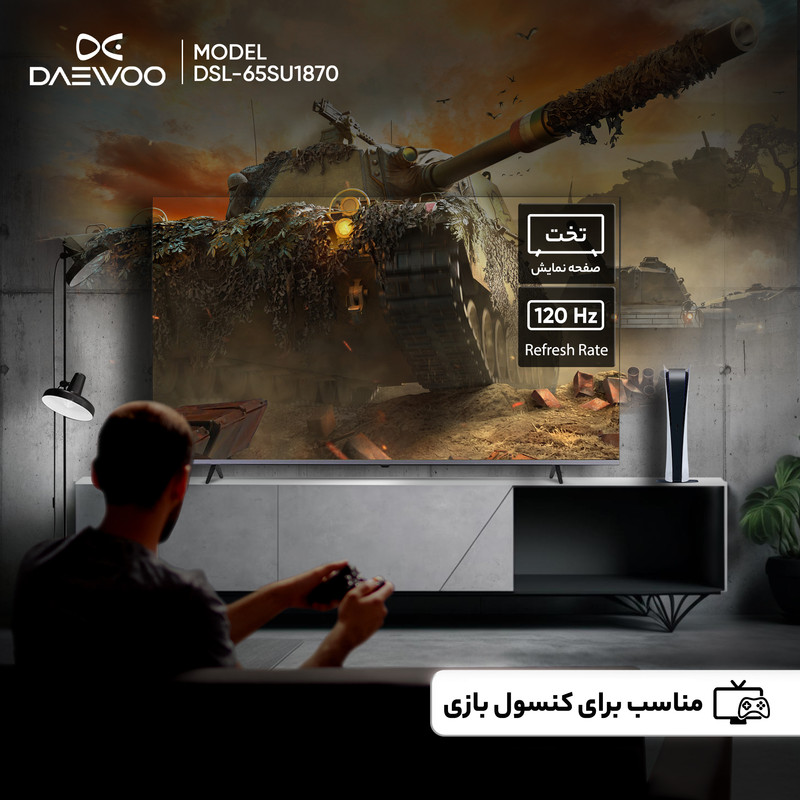 تلویزیون ال ای دی هوشمند دوو مدل DSL-65SU1870، با صفحهنمایش وسیع ۶۵ اینچی و بهرهمندی از وضوح تصویر 4K Ultra HD، به همراه امکانات یک تلویزیون هوشمند مدرن و نرخ نوسازی ۱۲۰ هرتز، گزینهای برجسته از برند نامآشنای دوو برای کاربرانی است که به دنبال ایجاد یک مرکز سرگرمی تمامعیار و سینمایی در خانهی خود هستند. این مدل با تمرکز بر ارائهی تصویری باکیفیت و روان، صدای فراگیر و دسترسی آسان به دنیای محتوای آنلاین، برای تماشای فیلمهای روز، سریالهای محبوب، برنامههای ورزشی و بهخصوص لذت بردن از بازیهای ویدیویی با کیفیت بالا، انتخابی ایدهآل و فراتر از انتظار به شمار میرود.