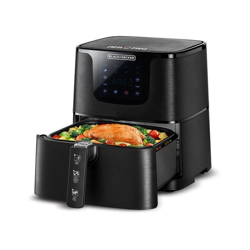 سرخکن مدل AF700-B5 از برند بلک اند دکر با طراحی مدرن و کاربری آسان، گزینهای مناسب برای تهیه غذاهای سالم و خوشمزه با کمترین میزان روغن است. این دستگاه با بهرهگیری از فناوری گردش هوای داغ (Rapid Air Convection)، امکان سرخکردن، پخت و گریلکردن غذاها را بدون نیاز به روغن فراهم میکند. با ظرفیت ۵.۸ لیتر، این سرخکن مناسب برای خانوادههای پرجمعیت یا مهمانیها است. توان ۱۷۰۰ وات آن، سرعت پخت را افزایش داده و زمان آمادهسازی غذا را کاهش میدهد. صفحهنمایش لمسی LED با کنترل دمای دیجیتال در بازه ۸۰ تا ۲۰۰ درجه سانتیگراد، امکان تنظیم دقیق دما را فراهم میکند. این دستگاه دارای ۷ برنامه پیشتنظیمشده برای انواع غذاها مانند سیبزمینی، مرغ، گوشت و سبزیجات است که استفاده از آن را بسیار ساده میکند. همچنین، تایمر ۶۰ دقیقهای آن، امکان پخت غذاهای مختلف را با دقت بالا فراهم میآورد. سینی سرخکن با طراحی ضدچسب و قابلیت جداسازی، شستشو را آسان کرده و از باقیماندن روغن یا چربی جلوگیری میکند. پایههای ضدلغزش، ایمنی دستگاه را هنگام استفاده تضمین میکنند. در مجموع، سرخکن AF700-B5 با طراحی کاربرپسند، عملکرد بالا و قابلیتهای متعدد، انتخابی مناسب برای افرادی است که به دنبال تهیه غذاهای سالم و خوشمزه در خانه هستند.