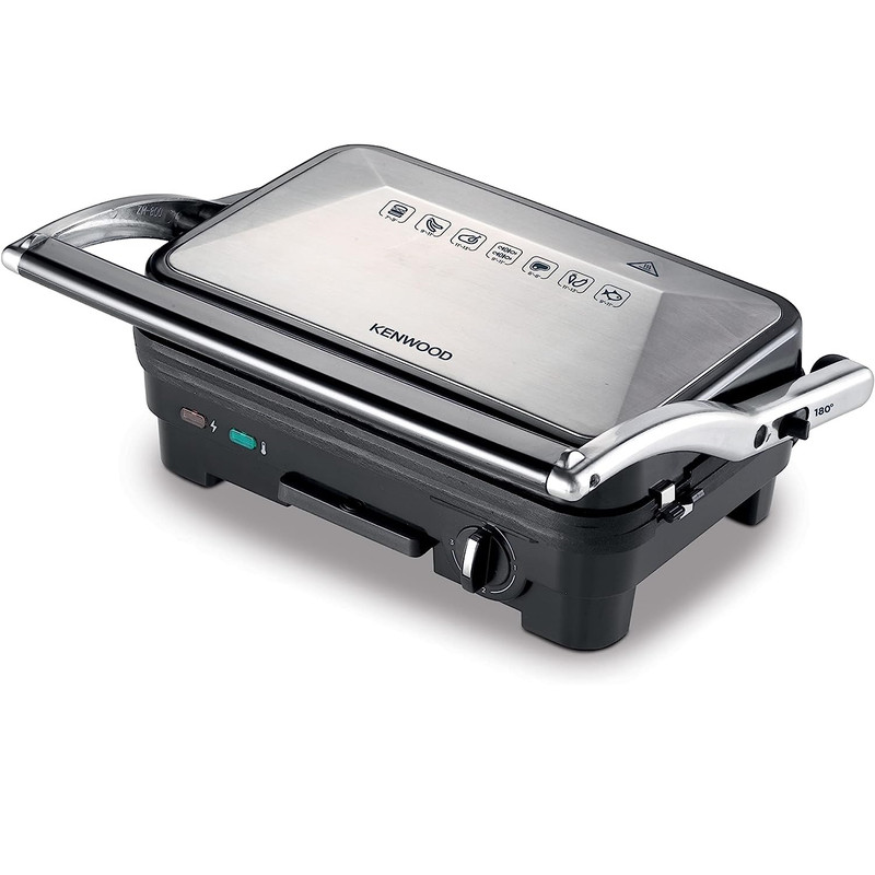 گریل کنوود HGM50؛ توان ۱۸۰۰ وات، صفحات قابل جداشدن دو حالته (گریل و تخت)، کنترل دما، سینی روغنگیر، دستگیره خنک و عملکرد سریع و تمیز.