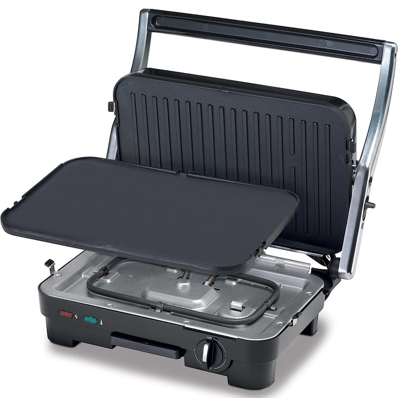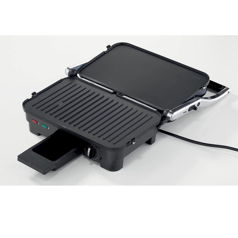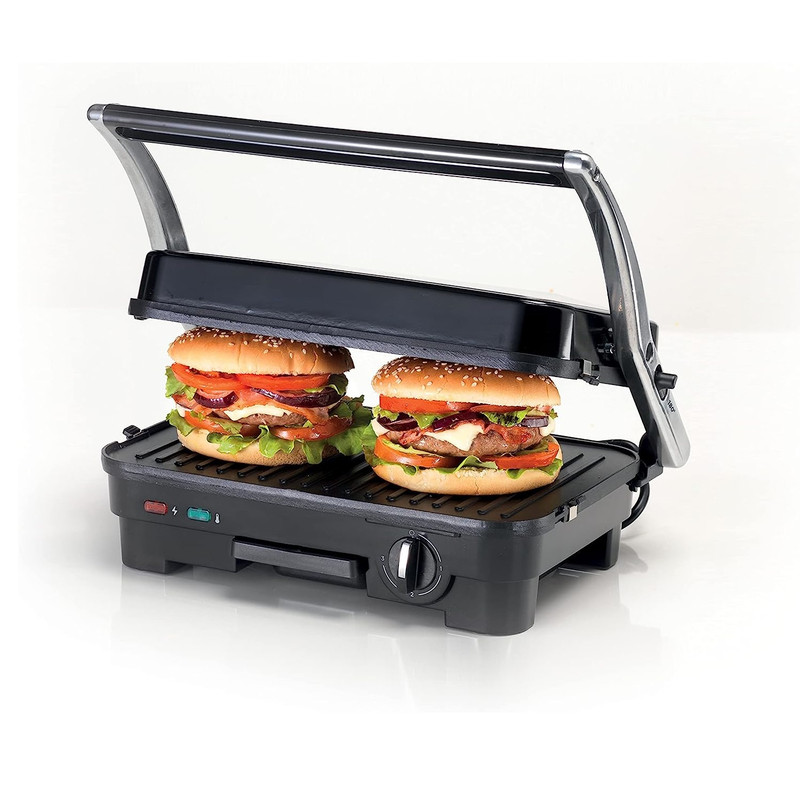 | سایر توضیحات | جنس دستگیره: پلاستیک مقاوم در برابر حرارت، لولای متحرک پخت یکنواخت حجیم ترین غذاها: دارد، کلید روشن / خاموش: دارد، صفحات با قابلیت چکه گیری روغن: دارد، جنس صفحات پخت آلومینیوم فشرده با پوشش نچسبقابل تبدیل شدن به گریل صفحه تخت: دارد، صفحه های دو رو سطوح هموار برای ساندویچ و گریل: دارد، صفحات جداشونده: دارد، گرم شدن سریع: دارد، عملکردها: گریل کردن مواد غذایی مانند گوشت، ماهی، سوسیس، ساندویچ، همبرگر، مرغ و سبزیجات |