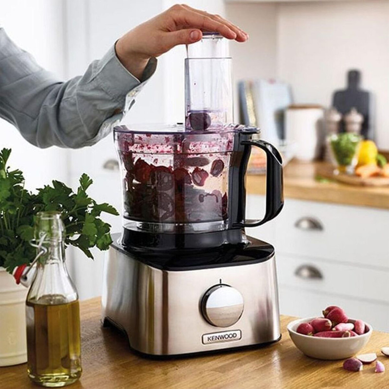 غذاساز Kenwood MultiPro Compact مدل FDM307SS ترکیبی از استحکام، دقت و تنوع کاربرد است. با موتور ۸۰۰ وات واقعی دستگاهی قدرتمند برای خردکردن، رنده، همزدن، خمیرگیری، آبگیری و آسیابکردن محسوب میشود. ظرفیت ۲.۱ لیتر کاسه اصلی و ۱.۲ لیتر پارچ شیشهای امکان استفاده برای حجمهای مختلف را فراهم میکند. این مدل مجهز به دو سرعت تنظیمی + عملکرد پالس است تا کنترل دقیق مواد از سفت تا نرم را ارائه کند. ابزارهای همراه شامل تیغه اصلی استیل، دیسکهای رنده و خلالبر، قلاب خمیر، همزن بادبزنی، آسیاب آسیاب خشک و آب مرکباتگیری است. تمامی قطعات قابل شستوشو در ماشین هستند و بدنه فلزی با پایه ضدلغزش ایمنی و پایداری را تضمین میکند