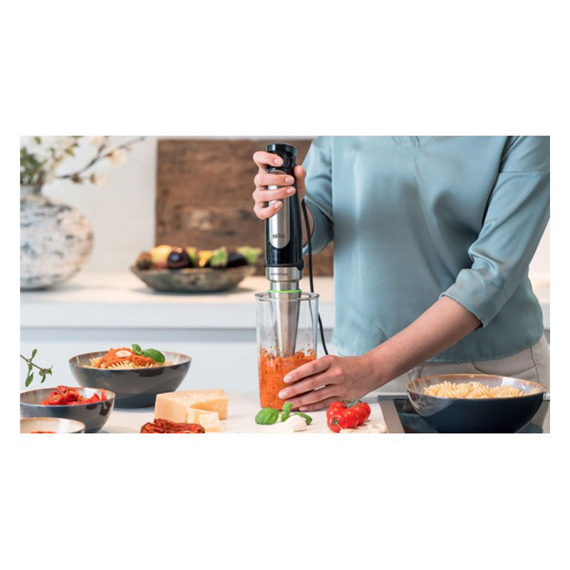 گوشتکوب برقی براون مدل MQ 7045x با ترکیب قدرت، دقت و طراحی مدرن، ابزار مناسبی برای تهیه انواع سوپ، پوره و سس در آشپزخانه شماست. این مدل مجهز به فناوری ActiveBlade است که با حرکت رو به بالا و پایین تیغهها، عملکرد خردکردن را بهینه میکند و باعث میشود حتی مواد سختتر به آسانی خرد شوند. طراحی ارگونومیک و دسته نرم، استفاده طولانیمدت را بدون خستگی امکانپذیر میکند. توان بالای موتور و تیغههای ضدزنگ، کیفیت و دوام محصول را تضمین میکند. همچنین قابلیت تنظیم سرعت، کنترل بیشتری روی بافت مواد غذایی به شما میدهد. جداکردن و شستوشوی قطعات آسان بوده و سازگار با ماشین ظرفشویی است. این گوشتکوب برای آشپزخانههای مدرن و پرمشغله انتخابی عالی محسوب میشود.