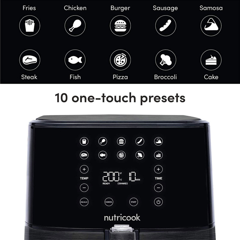 Quicker (سریعتر) ، Crispier (ترد تر) ، Healthier (سالم تر) این شعار سرخ کن های برند نوتریکوک است. سرخ کن جدید شرکت نوتریکوک با طراحی براق (مشکی برس خورده) با کیفیت برتر ، اندازه جمع و جور می تواند سرآشپز هر آشپزخانه ای شود. با کمک فناوری SmartTemp به طور خودکار دما را تنظیم می شود. سرخ کن AF205K دارای یادآوری مفید Shake است ، که به شما زمان تکان دادن محتویات را برای یکنواختی اطلاع می دهد. سبد سرخ شده با کیفیت عالی بدون PFOA ، بدون BPA ، با پوشش ضد چسب و قابل شستشو در ماشین ظرفشویی دارای فضای قابل استفاده بیشتری برای قرار دادن مواد غذایی ، بیشتر از یک سبد طرح گرد دارد.