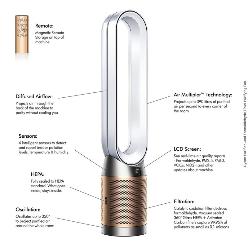 در دنیای امروز، کیفیت هوای داخل خانه از اهمیت ویژهای برخوردار است، بهخصوص در محیطهای شهری که آلودگی، گردوغبار، گازهای سمی و آلرژنها سلامت انسان را تهدید میکنند. Dyson Purifier Cool Formaldehyde TP09 پاسخی نوآورانه به این دغدغههاست؛ دستگاهی پیشرفته که نهتنها هوای محیط را با دقت بالا تصفیه میکند، بلکه با طراحی هوشمند و فناوریهای انحصاری، تجربهای متفاوت از پاکیزگی و آسایش را برای کاربران فراهم میآورد. این دستگاه ترکیبی از سه کارکرد حیاتی را در یک طراحی بینقص ارائه میدهد: تصفیه هوای پیشرفته، تشخیص و تخریب فرمالدهید (یکی از خطرناکترین آلایندههای خانگی) و خنککنندگی ملایم در روزهای گرم. با بهرهگیری از فیلتر HEPA H13، فیلتر کربن فعال، و فیلتر کاتالیزوری دائمی، Dyson TP09 تا ۹۹.۹۵٪ از ذرات میکرونی، گازهای مضر و بوهای ناخوشایند را از هوا حذف میکند، در حالی که طراحی کاملاً درزگیر آن از ورود دوباره آلایندهها جلوگیری مینماید. قابلیت اتصال به Wi-Fi، اپلیکیشن MyDyson، کنترل از راه دور و پشتیبانی از دستیارهای صوتی همچون Alexa و Google Assistant، TP09 را به گزینهای ایدهآل برای خانههای هوشمند تبدیل کرده است. علاوه بر آن، فناوری اختصاصی Air Multiplier™ جریان هوای تصفیهشده را بهصورت یکنواخت در سراسر اتاق پخش میکند و عملکردی بیصدا و مؤثر حتی در شب ارائه میدهد.