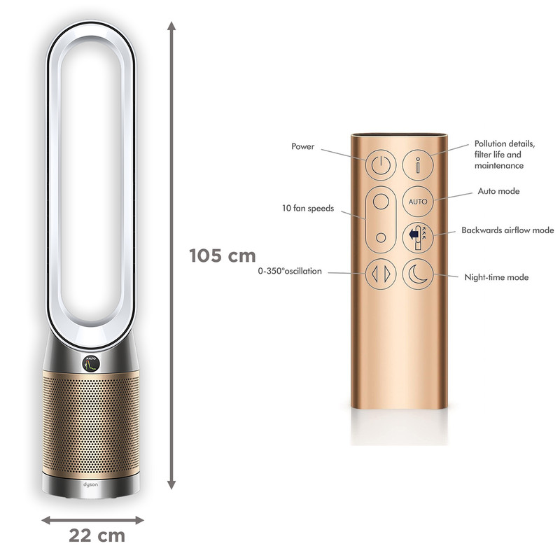 | سایر مشخصات | زاویه چرخش: تا ۳۵۰ درجه برای پوشش کامل فضا / تنظیمات سرعت: ۱۰ سطح مختلف / وزن: حدود ۴.۸۵ کیلوگرم / طول کابل برق: ۱.۸ متر / قابلیت کنترل: از طریق ریموت کنترل، اپلیکیشن MyDyson و دستیارهای صوتی مانند Alexa و Google Assistant / |