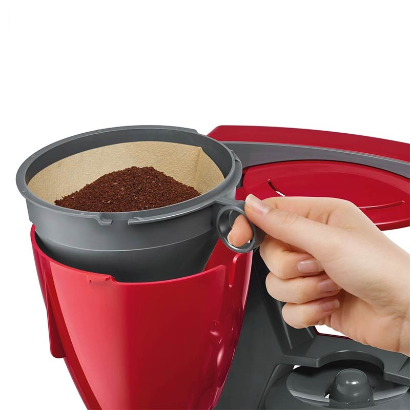 قهوهساز Bosch TKA6A044 ترکیبی از عملکرد حرفهای و طراحی کاربرپسند را ارائه میدهد. با ظرفیت ۱.۲۵ لیتر (۱۰–۱۵ فنجان) و توان ۱۲۰۰ وات، این دستگاه آمادهسازی سریع و ساده قهوه را تضمین میکند. ویژگی Aroma+ امکان کنترل بیشتر روی شدت رایحه و طعم قهوه را فراهم میکند تا نوشیدنی هر بار دقیقاً مطابق سلیقه شما باشد. تانک آب جداشدنی و شفاف نسبت به سطح آب، پر کردن آسان را ممکن میسازد. سیستم Drip‑Stop از چکه کردن قهوه روی صفحه گرمنگهدار جلوگیری میکند و نگهداری محیط را تمیز نگه میدارد. فیلتر Swing‑out برای تعویض آسان کاغذ یا شستشو طراحی شده و فرآیند EasyDescale3 رسوبزدایی هوشمند را در چند مرحله ساده انجام میدهد. خاموشی خودکار قابل تنظیم (۲۰/۴۰/۶۰ دقیقه) مصرف انرژی را بهینه و ایمنی را افزایش میدهد. ابعاد نسبتا کوچک (حدود ۳۵×۳۰×۱۷ سانتیمتر) و وزن کم، همراه طراحی شیک مشکی و پایه گرمکن داغ، ترکیبی از زیبایی، عملکرد و راحتی را ارائه میدهد. اگر به دنبال قهوهسازی ساده اما دقیق برای لحظههای روزانهتان هستید، TKA6A044 انتخابی خوشطعم و هوشمندانه است.