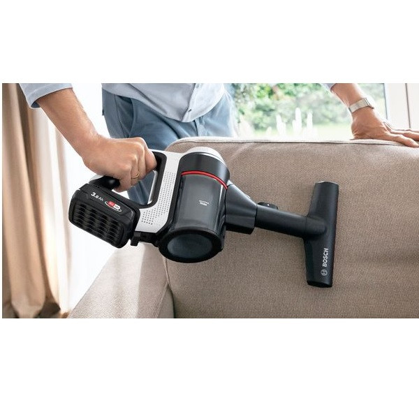 | سایر توضیحات | `ساخت کشور آلمان، قدرت مکش 18 ولت با باتری لیتیوم با قابلیت استفاده دریل و ابزار صنعتی بوش، قابلیت نصب بر روی دیوار، دارای برس گردان در پارویی جهت جمع کردن راحت مو و مواد ریز، دارای سیستم EasyClean جهت جدا سازی و تمیز کردن آسان برس و شیلنگ دارای حالت مکش توربو مخزن زباله جداشو و قابل شستشو، لوله اتصالی جاروشارژی تاشو میباشد که براحتی امکان تمیز کردن مبلمان و میز را برای شما فراهم میکند، زمان بازدهی شارژ دستگاه در حالت شارژ کامل 40 دقیقه بصورت استفاده مرحله ای و 20 دقیقه بصورت مداوم، نمایشگر میزان شارژ باتری، پارویی سطح کف دارای لامپ جهت استفاده راحت تر، قدرت مکش دستگاه در 3 درجه قابل تنظیم میباشد، دارای 5 قطعه اکسسوری شامل: سری گردگیر، لوله خرطومی، گوشه گیر، سری مو جمع کن مخصوص حیوانات خانگی (سگ و گربه)، سری گوشه گیر با طراحی خاص جهت تمیز کاری کیبورد کامپیوتر و کیس کامپیوتر، قابلیت استفاده بصورت ایستاده و دستی، گنجایش مخزن 0.3 لیتر، میزان صدا 82 دسی بل |