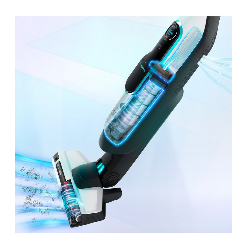 جاروی شارژی بوش BCH86SIL1 از سری Athlet ProSilence، ترکیب استثنایی از قدرت و سکوت است. با باتری ۳۶ ولتی، تا ۸۰ دقیقه شارژدهی را فراهم میکند و به لطف موتور و طراحی صوتی پیشرفته، یکی از کمصداترین جاروی بیسیم بازار است. این دستگاه بیکیسه مجهز به فیلتر چرخشی RotationClean است که با یک حرکت ساده کل فیلتر را تمیز میکند—بدون آب، بدون دردسر. با برس AllFloor مخصوص سرامیک، پارکت، فرش و حتی پشت مبلها، هر سطحی را بهراحتی پوشش میدهد. SmartSensor تعادل مکش را حفظ میکند و نشانگر LED وضعیت باتری و نیاز به تمیزکاری فیلتر را هشدار میدهد. قابلیت ایستادن خودکار، طراحی مینیمال و قابلیت قرارگیری همیشه در دسترس، BCH86SIL1 را به همراهی ایدهآل برای خانههای امروز تبدیل کرده است؛ جایی که تمیزی یعنی قدرت در سکوت.