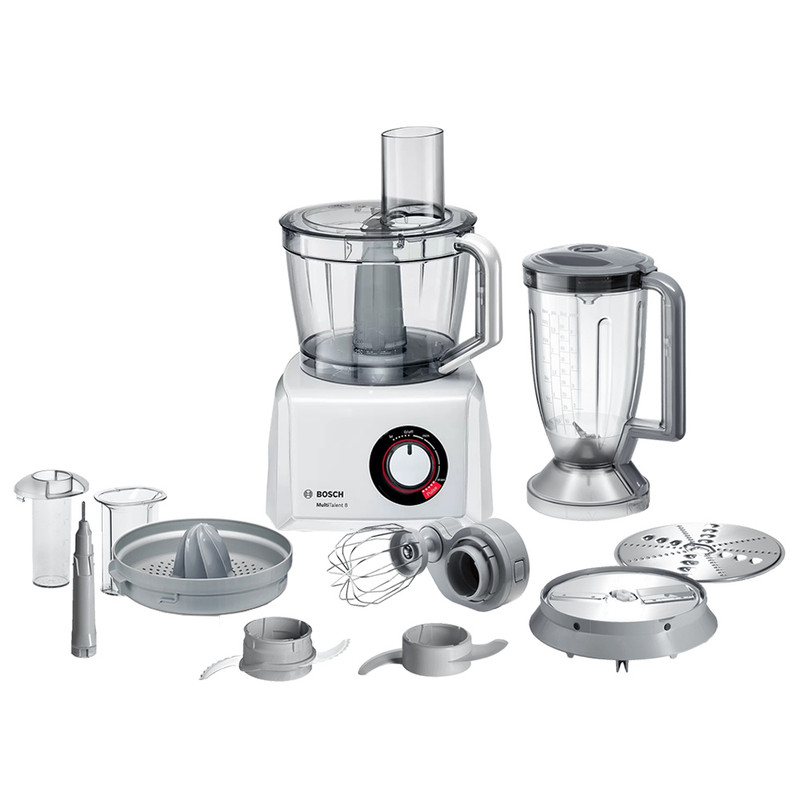 | سایر ویژگیها | غذاساز 50 کاره سری Multi Talent 8 (بالاترین سری غذاسازهای شرکت بوش)مجهز به جدیدترین تکنولوژی ساخت تیغه شرکت بوش ( cut blade ) برای خرد کردن ایده آل و بی نقصمجهز به سنسور تشخیص سرعت برای ابزارهای مختلف ( Smart Tool Detection )بیشترین ظرفیت کاسه بین غذاساز های بوش ( XXL Bowl )قسمت های پلاستیکی (در تماس با مواد غذایی) فاقد BPA میباشندموتور قدرتمند 1100 واتی هوشمند پالسیکاسه XXL با ظرفیت 3.9 لیتر برای خمیر با وزن بیش از 1.5 کیلوگرمدیسک های رنده دو طرفه (رنده ریز، درشت و ورقه ای نازک و ضخیم)دارای خمیر زن و همزندارای آب مرکبات گیرسیستم ایمنی چند گانهساخت اسلونی با کیفیت بالا |