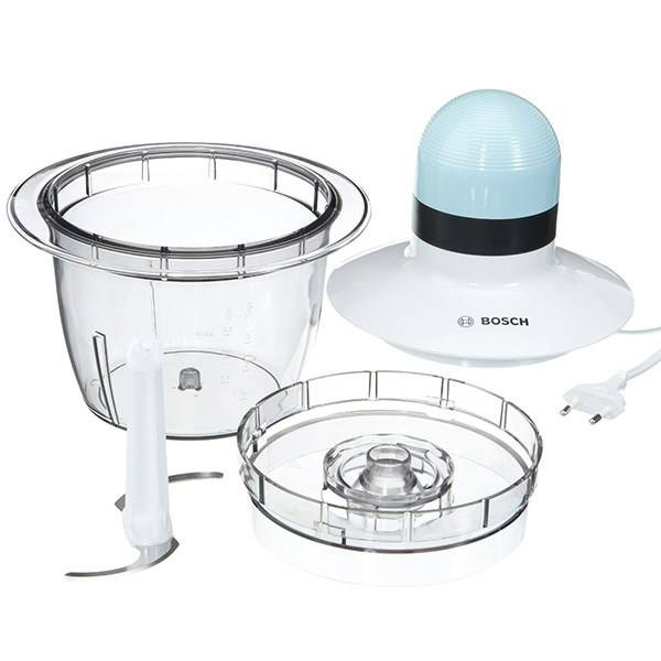 خردکن بوش مدل MMR0801GB با موتور 400 وات، تیغههای استیل ضدزنگ و ظرفیت 800 میلیلیتر، مناسب خرد کردن سریع سبزیجات، میوهها و مواد غذایی مختلف در آشپزخانههای خانگی است