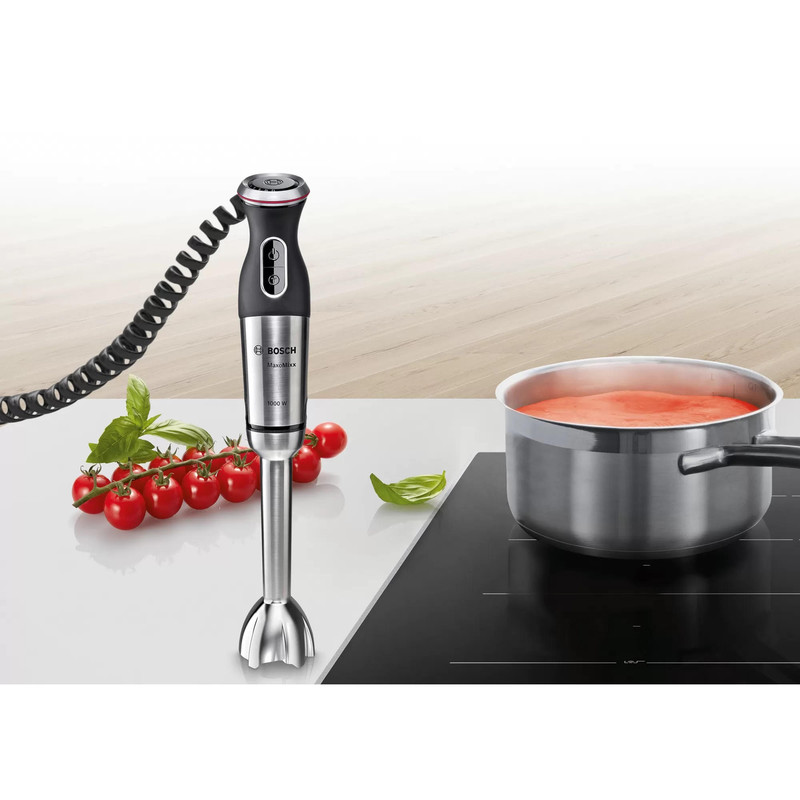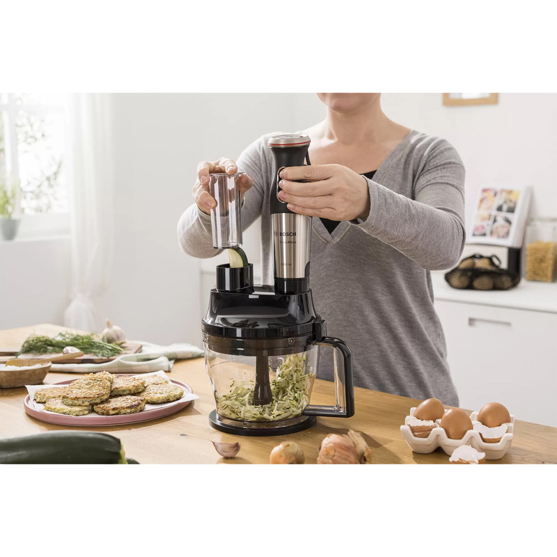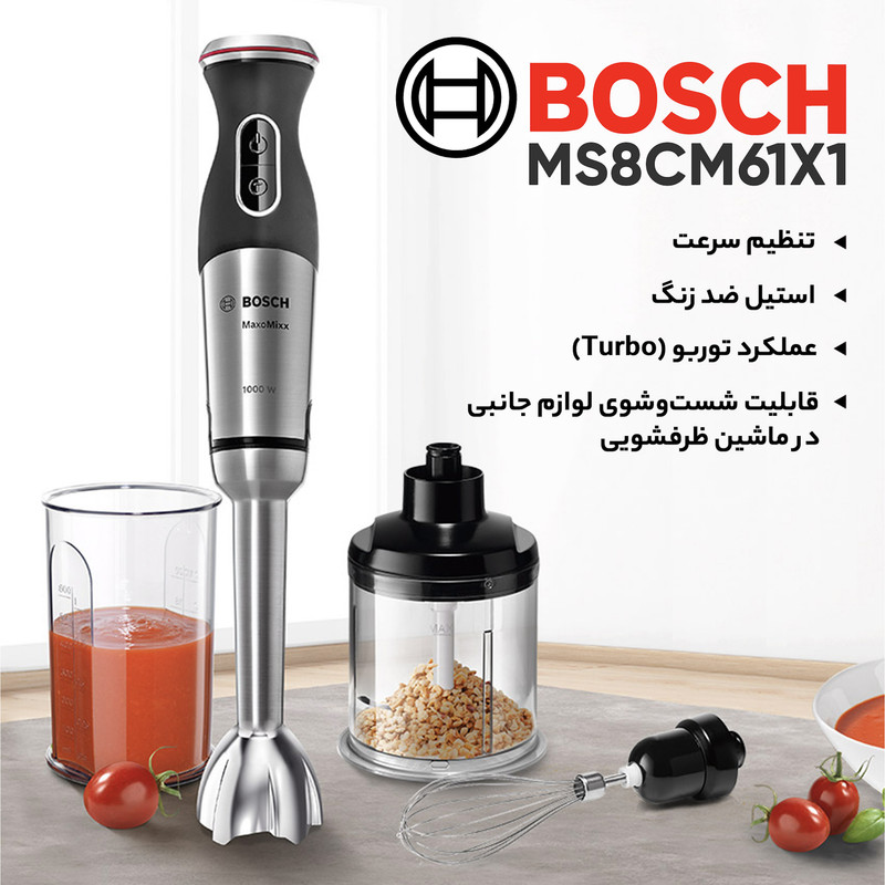 گوشتکوب برقی «بوش» مدل «MS8CM61X1» از دستگاههای حرفه ای و کاربردی عرضهشده در بازار است. این محصول خوشساخت کاملترین سری گوشکوب برقی های بوش میباشد که همانند یک غذاساز کاربرد دارد و از بارزترین ویژگی های این محصول استفاده راحت و به اصطلاح دم دستی بودن این محصول میباشد. محل قرارگیری دست روی آن طوری طراحی شده که بهخوبی در دست جای میگیرد و دسترسی به دکمههای کنترلی و پیچ تنظیم سرعت، آسان است. گوشتکوب برقی بوش مدل MS8CM61X1 در دوازده سرعت امکان فعالیت دارد تا بهترین نتیجه حاصل شود. تیغههای استیل ضدزنگ طراحی ویژه و چهار پره ای دارند تا بهترین عملکرد را داشته باشند. با استفاده از سری گوشتکوب، قدرت موتور صرف چرخاندن تیغهها شده و برای لهکردن موادی مانند گوشت، بادمجان و... استفاده میشود. از ویژگی های این محصول دو مخزن خردکن داشتن آن میباشد که مخزن کوچک جهت مصارف روزمره و حجم کم کاربرد دارد و ظرف خردکن بزرگ جهت خرد کردن حجم بیشتر مواد غذایی کاربرد دارد همچنین این محصول دارای چهار عدد رنده پر مصرف در آشپزخانه میباشد همراه این گوشتکوب بوش، یک لیوان هم ارائه میشود که برای پایهی گوشتکوب کاربرد دارد. با لهکردن مواد داخل این لیوان، راندمان و راحتی کار با گوشتکوب بیشتر میشود. علاوه برا ینها سری همزن نیز به همراه دستگاه عرضه میشود که برای همزدن موادی مانند تخممرغ، سسها و خمیرهای نرم قابلاستفاده است همچنین پره خمیرزن جهت ورز آوردن خمیر کیک و شیرینی در حجم خانگی نیز کاربرد دارد. از مهم ترین ویژگی های این محصول که باعث متمایز شدن این مدل از بقیه گوشت کوب برقی های بازار است میتوان به تیغه رنده نگینی اشاره کرد که رنده بسیار کاربردی در آشپزخانه میباشد. تمامی قطعات پلاستیک به کار رفته در دستگاه عاری از مواد شیمیایی (BPA FREE) میباشد ضمنا این مدل سرعت توربو هم دارد که با نگهداشتن دکمهی مربوطه روی بدنهی اصلی دستگاه، باسرعت فعالیت میکند و بهمحض رهاکردن میایستد. بوش، تولیدکننده و عرضهکنندهی لوازمخانگی برقی در بازار جهانی است. این شرکت با ارائهی محصولات باکیفیت و نوآورانه همواره پیشرو بوده و طرفداران خود را در سراسر جهان راضی نگهداشته است. بوش لوازمخانگی کوچک تا بزرگ تولید میکند و در تمامی موارد موفق عمل کرده است.