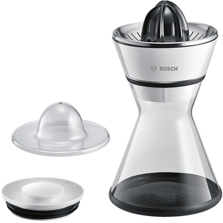 آب مرکباتگیری «بوش» مدل «MCP72GM» دستگاهی کوچک و کاربردی است. این محصول، آبگیری تعداد زیادی پرتقال، لیمو یا سایر مرکبات را امکانپذیر میکند؛ چراکه ظرفیت مخزن آبگیری آن یک لیتر است. آب مرکباتگیری بوش مدل MCP72GM بدنهی پلاستیکی و باکیفیت و طراحی بسیار زیبایی دارد. این آب مرکباتگیری به شکل ویژهای طراحی شده است؛ چراکه روی تنگ شیشهای مخصوص خود سوار میشود و آبپرتقال را مستقیما به آن وارد میکند. طراحی تنگ طوری است که بدون نیاز به دسته و دستگیرهی اضافه، بهراحتی در دست جای میگیرد. زمانیکه آبپرتقال درون آن ریخته میشود، بسیار وسوسهانگیز است و کاربر یا میهمانان را به نوشیدن آبپرتقال تازه و طبیعی مشتاق میکند. درپوش مخصوص تنگ نیز همراه دستگاه است تا درصورتیکه تمام آبمیوه مصرف نشد، بتوان آن را در یخچال نگه داشت یا تنگ پر از آبپرتقال را در یخچال قرار داد تا برای پذیرایی از میهمانان یا سر میز صبحانه خنک شود. برای آبگیری لیمو در تعداد و میزان کم میتوان از تنگ استفاده نکرد و پس از آبگیری تعداد کم لیموترش آن را بهعنوان چاشنی، سس یا مزه برای غذاهای مختلف به کار برد. بوش، تولیدکننده و عرضهکنندهی لوازمخانگی برقی، با ارائهی لوازم متنوع و کاربردی در سراسر جهان پرآوازه شده است.