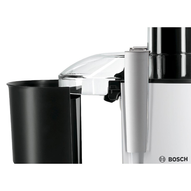 آبمیوه گیری بوش مدل MES25A0، از جمله محصولات با کیفیت و با طراحی زیبای این شرکت است. این آبمیوهگیری دارای دو مخزن آبمیوه و تفاله است که هر کدام به گونهای مجزا از دستگاه در کنار آن قرار گرفتهاند. بدنهی پلاستیکی و سفید این دستگاه در کنار سایر قطعات با رنگ تیره این دستگاه را زیباتر کرده است. تیغهی اصلی آبمیوه گیری بوش مدل MES25A0 از جنس استیل ضد زنگ است و دهانهی دستگاه هم از قطر مناسبی برخوردار است. علاوه بر فیلتر دستگاه که به راحتی قابل شستشو است، سایر لوازم جانبی آن هم قابلیت شستشو در ماشین ظرفشویی را دارند. برای تمیز کردن فیلتر این آبمیوه گیری یک برس در اختیار خریداران آن قرار خواهد گرفت. از جمله لوازم جانبی آبمیوه گیری بوش مدل MES25A0 میتوان به مخزن پلاستیکی آبمیوه که شفاف و دارای درجه بندی است و همچنین مخزن تفاله آبمیوه گیری اشاره کرد که به راحتی میتوان آنها را پس از پر شدن از دستگاه جدا کرده و با توقفی کوتاه در عملکرد دستگاه، آنها را خالی و برای ادامه فرآیند آبگیری روی دستگاه قرار داد. آبمیوه گیری بوش مدل MES25A0 دستگاهی تک کاره محسوب میشود و در 2 سرعت مختلف توان انجام فرآیند آبمیوه گیری را دارد. پایه های ضد لغزش زیر دستگاه مانع از لرزش و جابجایی حین فعالیت آن میشوند. لوله خروجی این دستگاه و پارچ آبمیوه طوری طراحی شدهاند تا آبمیوه مستقیم وارد پارچ شده و چکهای ایجاد نشود. ظرفیت پارچ این دستگاه در حدی است که 3 تا 4 لیوان کوچک یا متوسط آبمیوه را در خود جای میدهد.