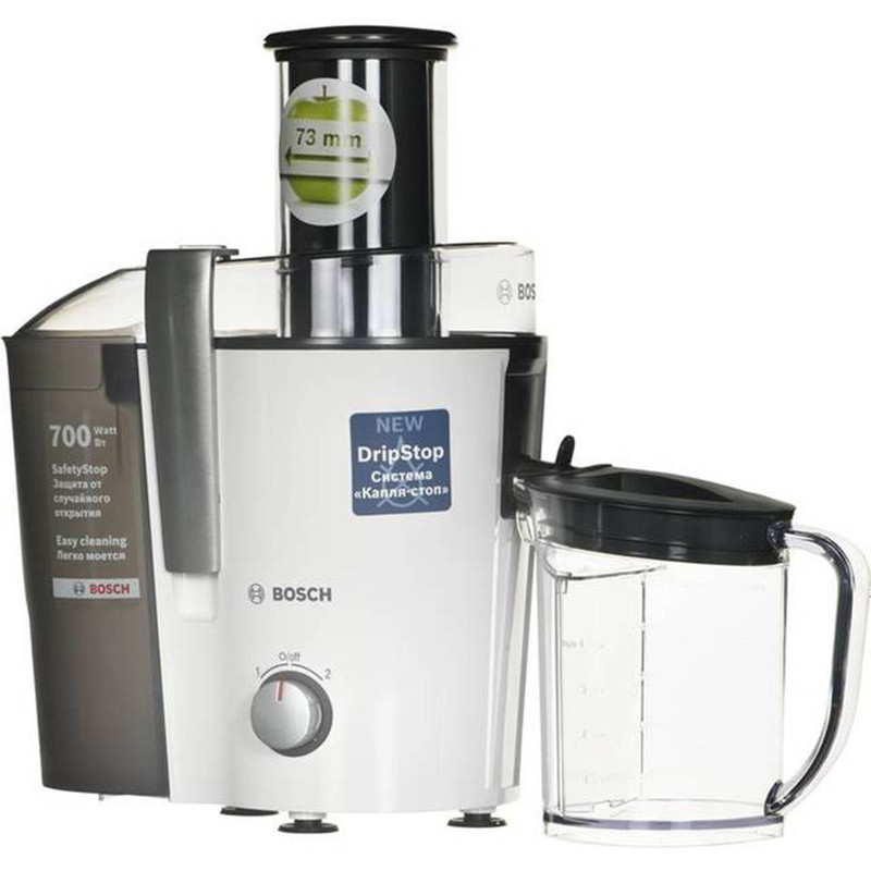 آبمیوهگیری بوش مدل «MES25A0» یکی از آبمیوهگیریهای تککاره موجود در بازار است. این دستگاه از بدنهای از جنس پلاستیک بادوام ساخته شده و استحکام خوبی دربرابر ضربه دارد. قسمت ورودی میوهها در بخش بالایی دستگاه واقع شده است که با قطر زیادی که دارد، میتواند بهآسانی قطعات بزرگ میوه را از خود عبور دهد. این ویژگی کار با دستگاه را آسانتر کرده و به آن سرعت بخشیده است. مخزن آبمیوهگیری در این محصول بوش مندرج بوده و 1.25 لیتر ظرفیت دارد.