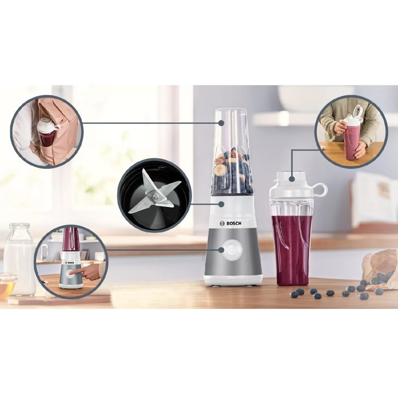 | سایر توضیحات | شیکر بوش با توان مصرفی 450 وات، سرعت چرخش تیغه 40.000 دور در دقیقه، تیغه مخلوط کن ساخت شرکت زولینگن آلمان، طراحی داخلی پارچ مخلوط کن بصورت 3D که براحتی مواد را در سریع ترین زمان ممکن میکس میکند، دارای پارچ همراه جهت استفاده در باشگاه، ماشین، سفر و ....، قطعات پلاستیکی عاری از هرگونه مواد شیمیایی (BPA FREE)، طراحی و مهندسی در آلمان ساخت کشور اسلوونی |