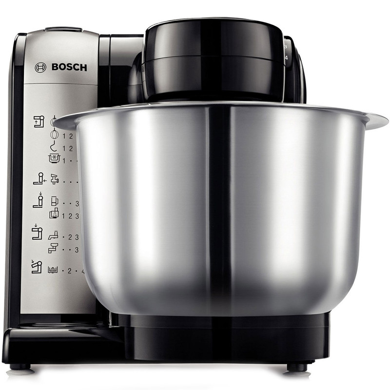 ماشین آشپزخانه بوش مدل MUM48A1یک دستگاه همهکاره بسیار کارآمد است که وارد بازار شده و طرفداران زیادی دارد. این محصول با رنگ مشکی خود و ترکیب با المانهای رنگ روشن و استیل زیبایی دوچندانی دارد که به آشپزخانهها روح و حس قدرت میبخشد. ظرف اصلی این محصول مخصوص خمیرگیری و شیرینیپزی است و بهاینترتیب در رده ماشین آشپزخانهها دستهبندی میشود. کافی است ملزومات لازم را به دستگاه وصل کنید و موتور را روشن نمایید. دیسکهای رنده ارائهشده همراه مدل MUM48A1قابلیت ریز کردن به شکلهای مختلف مواد را دارند. پرههای همزن برای هم زدن و حل کردن مواد سبک تا نسبتاً خشک استفاده میشوند. تنوع سرعت و قابلیت تنظیم آنها باعث میشود تا عملکرد دستگاه بیشتر در اختیار کاربر باشد. پایههای ضد لغزش در نظر گرفتهشده زیر ماشین آشپزخانه، مانع از حرکت، لغزش و جابجایی دستگاه میشود. البته موتور قدرتمند این دستگاه میتواند تأمینکننده نیروی حرکتی قطعات جانبی مانند چرخگوشت، مخلوطکن، خردکن و آب مرکبات گیری باشد که این قطعات بهعنوان لوازم جانبی قابل تهیه در بازار است و با این محصول یکجا عرضه نمیشود. بوش تولید و عرضهکننده لوازمخانگی در سراسر جهان شناختهشده است. این شرکت با ارائه محصولات باکیفیت و متنوع برای نیازهای متنوع کاربران گزینههای متفاوتی پیش روی خریداران قرار میدهد.