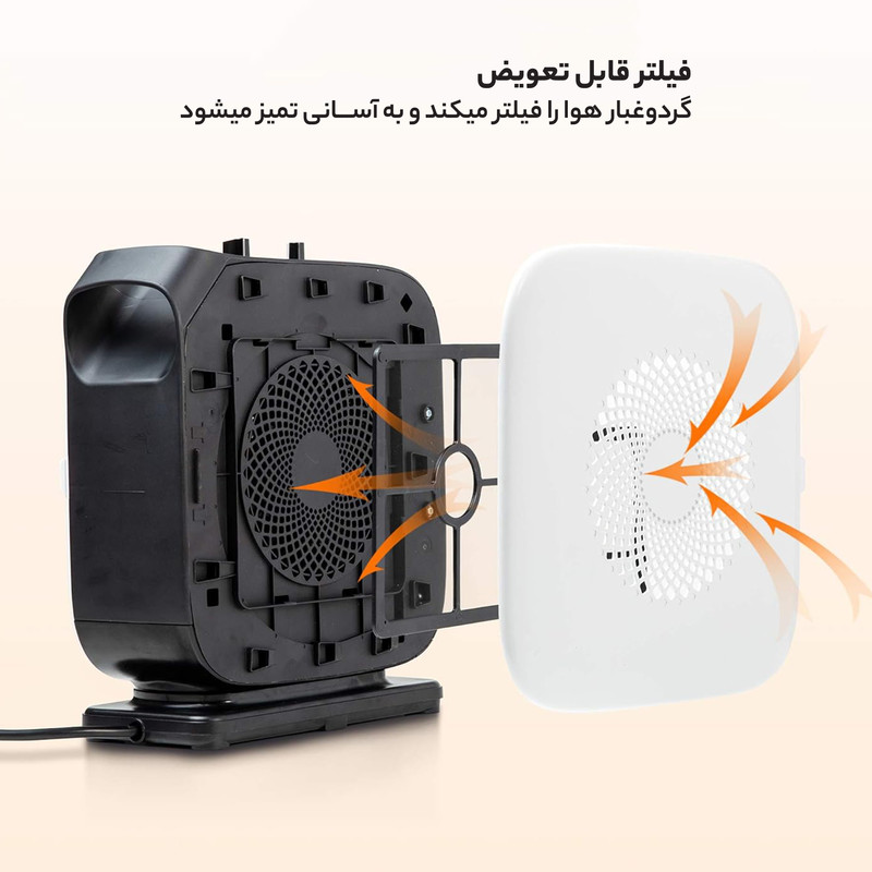 یکی از نقاط قوت اصلی این هیتر، برخورداری از فن و فناوری گرمایش PTC است که به توزیع یکنواخت و سریع گرما در محیط کمک میکند. با توجه به عملکرد نوسانی فن، گرما به صورت مؤثر در تمامی نقاط اتاق پخش میشود و این امر احساس راحتی بیشتری را برای استفادهکنندگان به ارمغان میآورد. این ویژگیها به کاربران این امکان را میدهد تا در زمانی کوتاه، دمای دلخواه خود را در فضاهای مختلف مانند اتاق نشیمن، دفاتر کار و... برقرار کنند.