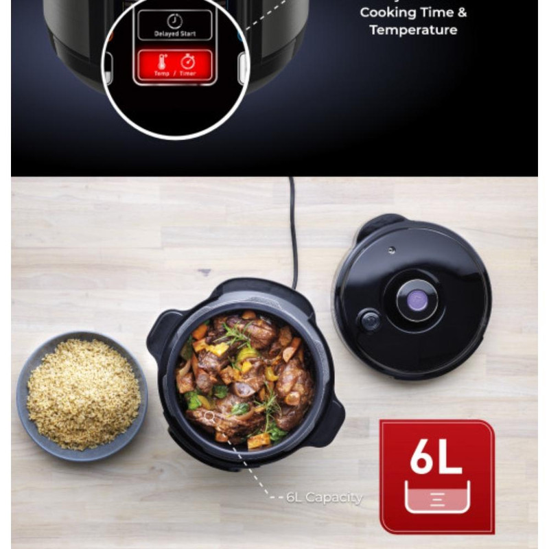 | سایر مشخصات | توان مصرفی 1090 وات، گنجایش 6 لیتر یا 12 پیمانه، تا 80 درصد زمان پخت کوتاه تر و حفظ ویتامین های مواد غذایی، قابلیت تحمل 70 کیلو پاسکال حجم بخار و سه برابر سریع تر نسبت به سایر زودپزهای برقی مشابه، دارای 13 برنامه پخت متنوع، سیستم گرم نگه دارنده اتومات، پوشش دیگ داخلی کاملا نچسب و عاری از هرگونه مواد شیمیایی (PFOA FREE)، منوهای پخت متنوع شامل: پخت آرام پزی، پخت سریع، تفت دادن، پختن، پخت برنج سریع، فرنی، گوشت، مرغ، سوپ، بخار پز کردن، گرم نگه دارنده و ....، قابلیت زمان دهی و پخت با تاخیر تا 24 ساعت، پوشش داخلی با کیفیت بسیار بالا و کاملا نچسب با ضخامت 1.5 میلیمتر و 4 لایه پوشش نچسب، |