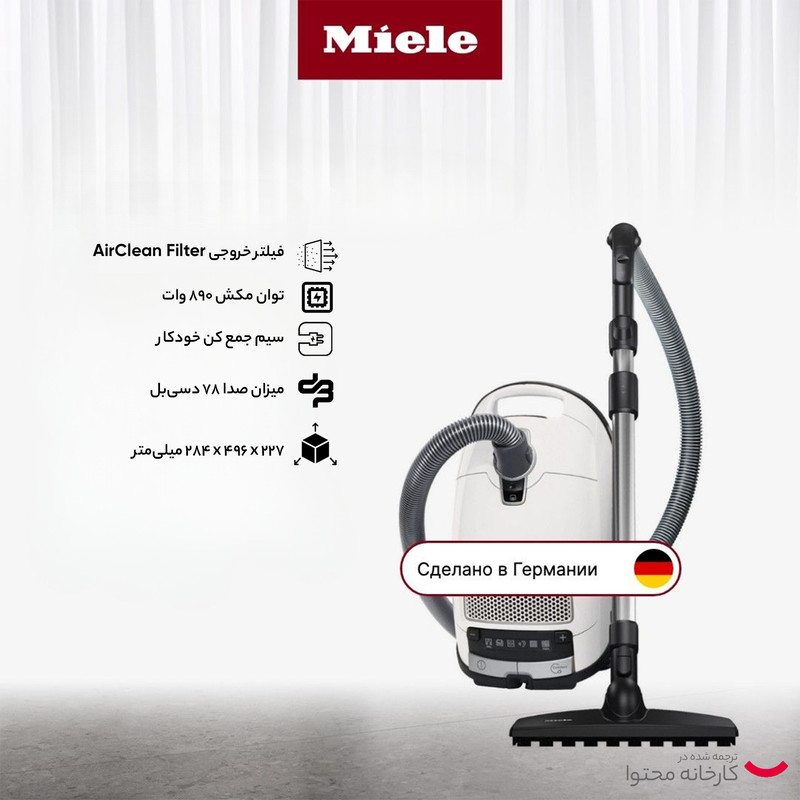 مهندسی پیشرفته جارو برقی میله به شما کمک میکند تا پاکیزگی مدرنی را تجربه کنید. یک مجموعه از ویژگی های عالی با طراحی مدرن و ارگونومیک در کنار استفاده راحت از جارو کشیدن شما را وبسته به جارو برقی میله میکند. موتور قدرتمند پاورلاین با توان 890 وات مکش عمیق و بدون بو را ایجاد کرده و باعث حداکثر تمیزی سطوح شما میشود. تصفیه استثنایی این جاروبرقی از طریق کیسه های گرد و غبار Miele HyClean تا 99.9 درصد گرد و غبار را جذب کرده و باعث حفظ قدرت موتور شده و هوای خروجی را نیز تمیز نگه میدارد و بنابراین می توانید با سهولت نفس بکشید. دور تا دور جارو برقی میله با سپر نرمی حفاظت شده تا از برخورد با اثاث و مبلمان شما در امان باشد و آسیبی به آنها نرسد. سه عدد سری جانبی نیز درون دستگاه گنجانده شده تا همواره در دسترس و کنار شما باشد. لوله تلکسکوپی جهت کوتاه و بلند کردن و سیم بلند جارو برقی میله باعث کارکرد جارو برقی تا شعاع 12 متر شده و شما را بی نیاز از تعویض سوکت برق در خانه میکند.