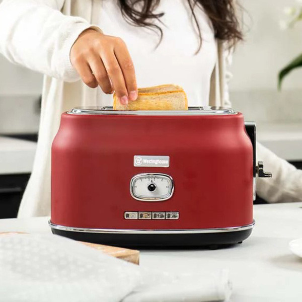 توستر وستینگهاوس مدل WKTTB857RD سری Retro که برای زیبایی برای هر آشپزخانه ای طراحی شده است در 3 رنگ: مشکی، قرمز و سفید عرضه می شود. امکان میزان برشتگی متغییر به مقدار مورد نظر شما را ارائه می دهد که از سطح ۱ (روشن) تا ۶ (تاریک) را می توانید انتخاب کنید. 2 شکاف با امکان قرار گرفتن نان در وسط امکان قرار دادن نان با هر ضخامتی را فراهم می کند و به طور یکنواخت آن را برشته می کند . دارای دکمه های یخ زدایی، گرم کردن مجدد نان و شیرینی و دکمه کنسل نیز می باشد که برشته کردن عالی را برای اقلام یخ زده ، شیرینی ها و موارد دیگر را فراهم می کند. دارای چراغ های نشانگر وضعیت ، سینی خرده نان قابل جدا شدن برای تمیز کردن آسان، اتصال برق ایمن ، کنترل میزان برشتگی ، چراغ نشانگر یخ زدایی و گرم کردن مجدد با طراحی زیبا و یکپارچه می باشد .