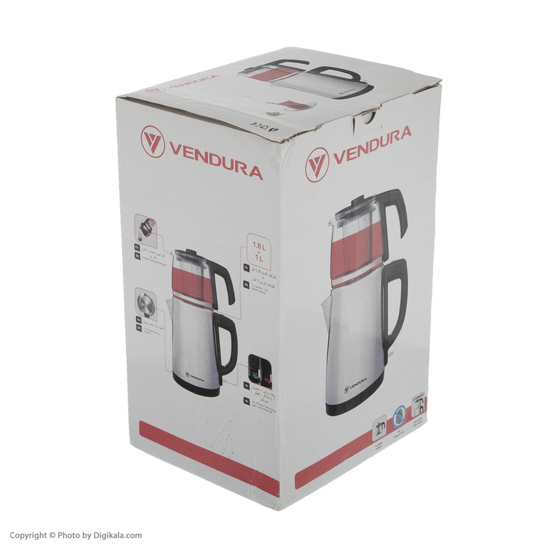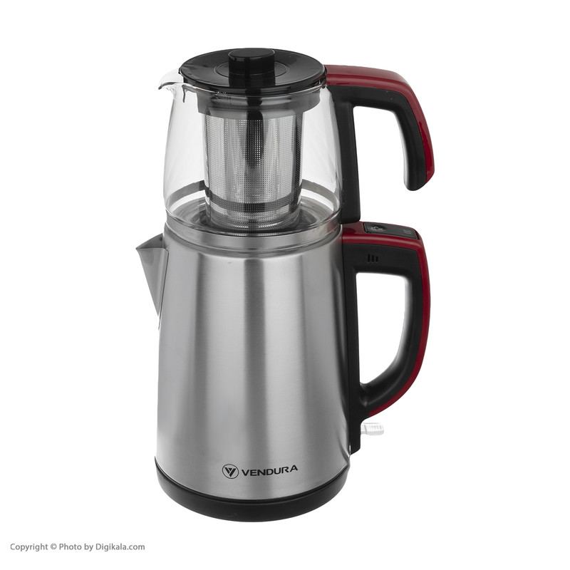 اگر به نوشیدن چای علاقه دارید باید چای ساز تهیه کنید. چای ساز وندورا مدل TF2211 یک چای ساز جمع و جور است. این مدل قوری، کتری دارد. . ظرفیت کتری آب این مدل 1.8 لیتر است. برای کتری این مدل از جنس استیل و قوری از شیشه استفادهشده است. استفاده از شیشه باعث شده تا بتوانید محتویات درون قوری را ببینید و نیازی باز کردن درب نداشته باشید. این مدل یک پنل دیجیتالی برای اعمال تنظیمات دارد. قوری و کتری این مدل روی هم قرار گرفته و این ویژگی باعث شده تا این چایساز فضای کمتری را اشغال کند. توان صرفی چایساز تفال 1650 وات بوده که این میزان برای مصارف خانگی کافی است. دستگیرهای که برای قوری و کتری تعبیه شده عایق حرارت بوده و باعث شده تا استفاده از این چایساز آسان باشد. یکی از ویژگیهای این محصول طول سیم آن است. تفال برای این مدل سیمی به طول 0.8 متر استفاده کرده که برای یک چایساز میزان استانداردی است