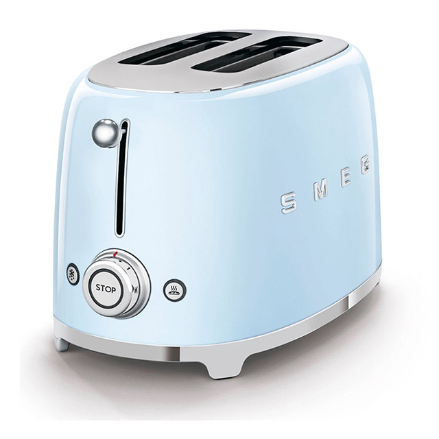 توستر اسمگ مدل TSF01 طراحی بسیار خاص و زیبایی دارد که یادآور وسایل خانگی قدیمی است. این مدل از سری 50s Style اسمگ است که با الگوبرداری از سبک طراحی دههی 60 و اوج دوران مدرنیته طراحی شدهاند. از همین رو در طراحی آنها از خطهای صاف و زاویههای تند استفاده نشده است. این سبک طراحی باعث میشود دستگاه حس خشک و صنعتی یک ماشین را نداشته باشد و بیشتر دکوراسیون آشپزخانه را گرم و صمیمی کند. این توستر دارای 2 جای نان است و از این رو برای خانوادههای کوچک دو نفره بسیار مناسب است. همانطور که از نام این دستگاه پیداست، کار اصلی آن تست کردن نان است. باوجود قابلیت تنظیم حرارت، کاربر میتواند نان تست خود را به میزان مورد علاقهی خود تست کند تا کاملا ترد، نیمه ترد یا نرم باشد. البته برای دستگاه دکمهی توقف هم در نظر گرفته شده تا کاربر بتواند فرایند تست شدن را متوقف کردن و میزان تردی نان را بسنجد. البته که توستر غیر از کار اصلی خود، برای یخ زدایی نان هم کاربرد دارد. شاید این مفیدترین کاربرد توستر باشد چون مشکل گرم کردن نان با مایکروفر یا روی گاز را حل میکند. وقتی نان را روی اجاق گاز گرم میکنیم احتمال سوختن آن بسیار زیاد است. همچنین وقتی نان را با مایکروفر گرم میکنیم تنها برای چند دقیقه حالت تازگی دارد و پس از آن کاملا خشک و سفت میشود. اما توستر با حرارت طبیعی، متداوم و نه چندان زیاد نان را یخزدایی و سپس گرم میکند. به این صورت نان طوری گرم میشود که انگار به تازگی از تنور بیرون آمده است. برای این که خورده نان داخل توستر جمع نشود و تمیز کردنش کاربر را دچار دردسر کند، یک سینی کشویی زیر دستگاه کار گذاشته شده که خوردههای نان روی آن میریزد و کاربر به سادگی آن را بیرون میکشد و تمیز میکند