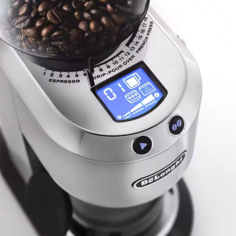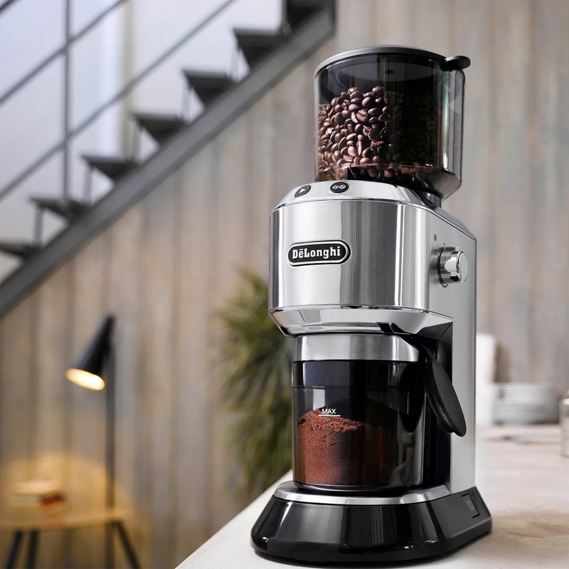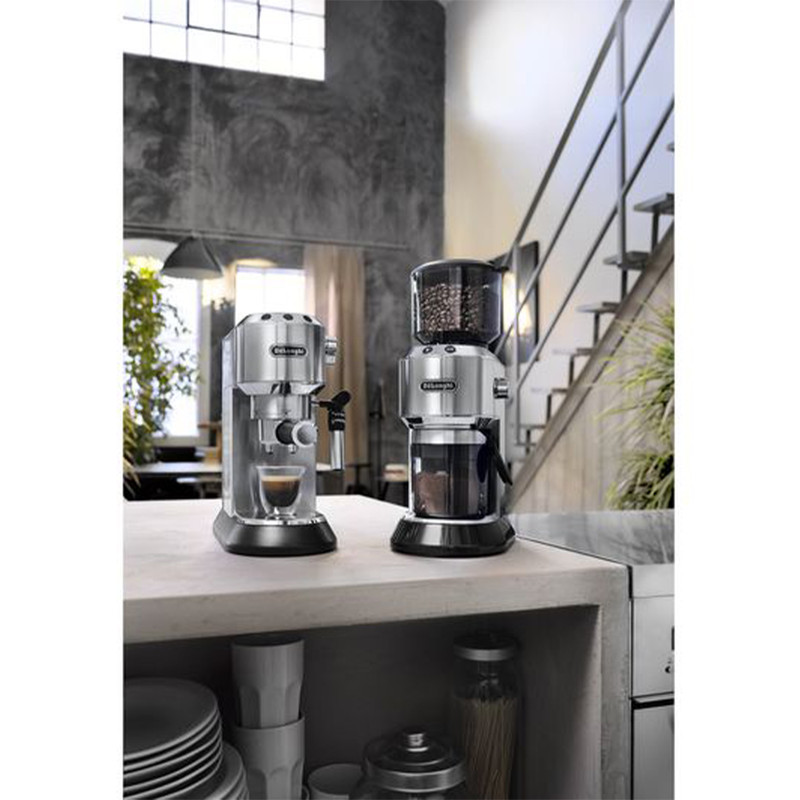 آسیاب قهوه دلونگی مدل KG521.M از سری Dedica، یک دستگاه حرفهای با طراحی مدرن و بدنهای از استیل ضدزنگ است که برای علاقهمندان به قهوه تازه و با کیفیت طراحی شده است.
