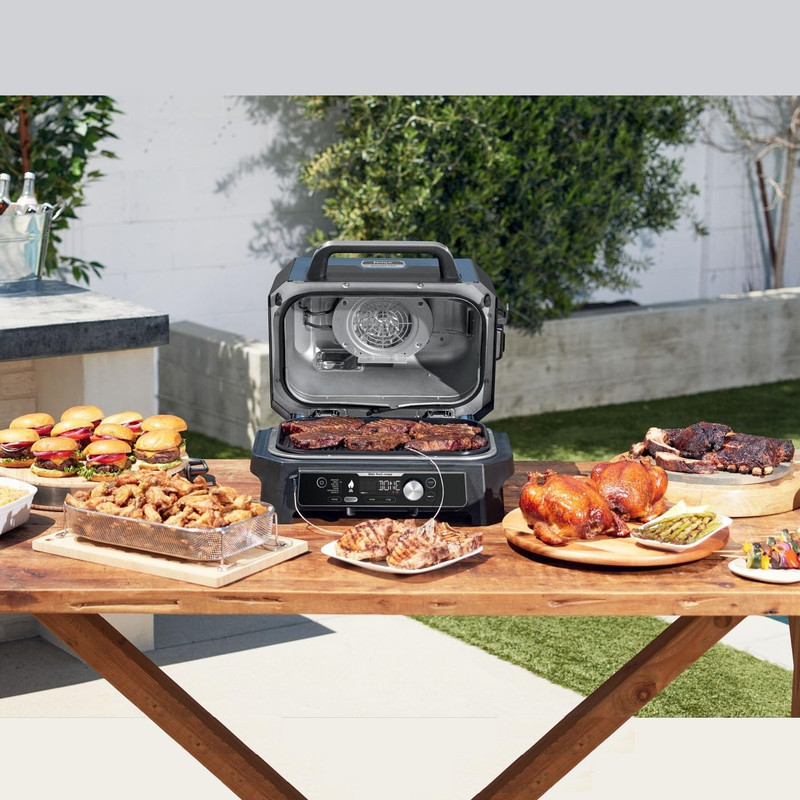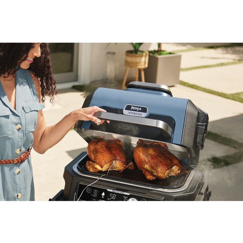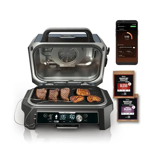 اگر دوست دارید در هوای آزاد و یا حیاط خانه تان آشپزی کنید و از پخت انواع غذاها لذت بیشتری ببرید، این محصول را از دست ندهید. سرخ کن گریل نینجا مدل OG901 از جمله محصولات باکیفیت برند ninja بوده که می توان از آن در هر مکانی از جمله باغ، حیاط، بالکن، پاسیو و سایر فضاهای بیرونی استفاده کرد و از پخت و پز در فضای باز و دل طبیعت لذت برد. این دستگاه قابلیت اتصال به وای فای wi-fi را دارد و شما می توانید با اپلیکیشن نینجا به طور مستقیم باربیکیو را با موبایل خود کنترل کنید، برنامه پخت مناسب، زمان و دمای پخت را تنظیم کرده و از پیشرفت پخت و پز غذا مطلع شوید. سرخ کن و گریل ninja OG901 قابلیت تنظیم دما تا 260 درجه سانتی گراد و تنظیم زمان از دیگر مزیت های این محصول می باشد. فن کانوکشن نیز به طور یکنواخت حرارت را در اطراف غذا به گردش در می آورد تا غذا به طور کامل مغز پخت و برشته شود. با وجود سیستم پخت هوشمند، نگرانی بابت خام بودن یا سوختن غذایتان نخواهید داشت. دماسنج هوشمند مدام غذای گوشت، مرغ و ماهی را هنگام پخت بررسی می کند و به شما اعلام می کند که چه زمانی برای برداشتن آماده است. این سرخ کن به ۷ برنامه پخت پیش فرض مجهز شده تا بتوانید متنوع ترین غذاها و درسرها نظیر مرغ شکم پر، جوجه، استیک گوشت، همبرگر، سیب زمینی و قارچ سرخ شده، سیب زمینی ژاکتی، املت، پیتزا، انواع کوکو و کتلت ها،کیک، شیرینی، پنکیک ها و غیره را سریع و راحت تهیه کنید. این ۷ برنامه پخت شامل موارد زیر است: سرخ کردن با هوا air fry پخت گریل grill پخت دودی smoker کباب کردن roast پخت کیک و شیرینی Bake آبگیری و خشک کردن میوه dehydrate گرم کردن مجدد reheat طعم دودی و کبابی غذا با فناوری Woodfire سرخ کن گریل نینجا مدل OG901 یک ویژگی منحصر به فرد نسبت به دیگر دستگاه های سرخ کن گریل دارد و آن هم وجود فناوری woodfire و قابلیت ایجاد دود است که به غذای شما طعم دودی و کبابی می دهد. گویی غذا را روی ذغال آماده کردید. در این فناوری درون مخزنی مخصوص تکه های چوب جهت ایجاد آتش و گریل کردن مواد غذایی قرار می گیرد. چنانچه کم و آهسته دود کنید، نتایج لطیف و آبدارتر حاصل می شود.