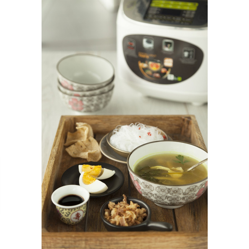 | سایر توضیحات | عملکرد ارام پزعملکرد بخارپزعملکرد پلوپزدرجه گرما قابل تنظیمپخت انواع خورشمنو سرخ کنمنو سرخ ماهیقسمتی از درب پیرکسمنو گرم کردن مجددمنو شروع به کار تاخیریصفحه کلید الکترونیکی با نمایشگر السیدیقابل برنامهریزی با تایمرسوپاپ بخار و در محافظ بخار متحرکدرپوش با قفل خودکاربه صدا درآمدن زنگ در ابتدا و پایان پختقابلمه پخت: نچسب / متحرکسیم برق جداشدنیقسمت داخلی درب جداشونده و قابل شستشو |