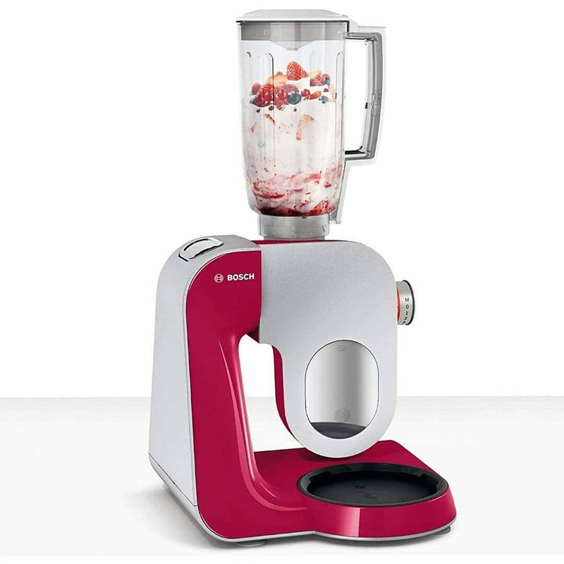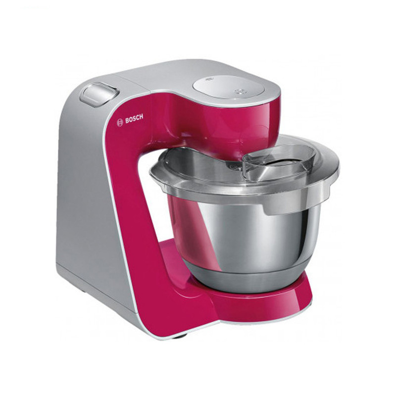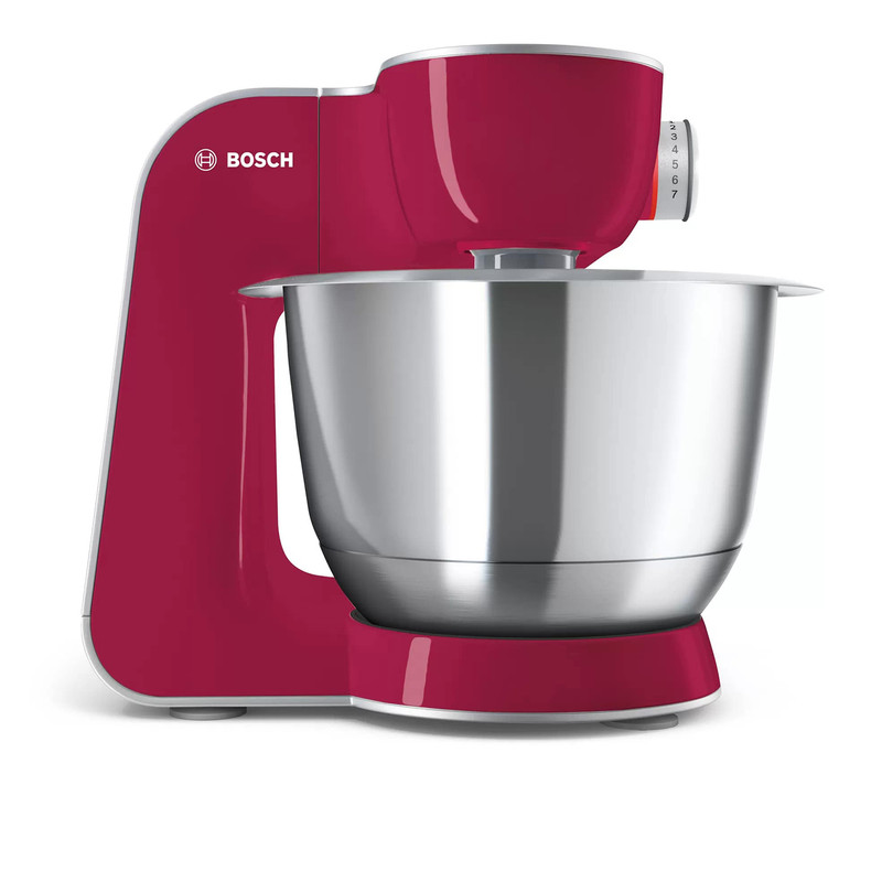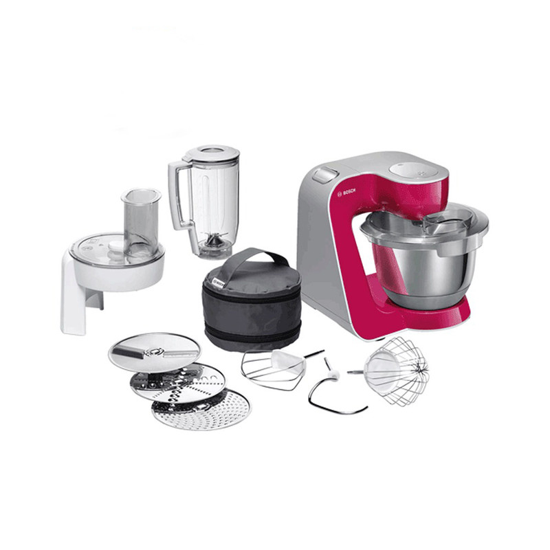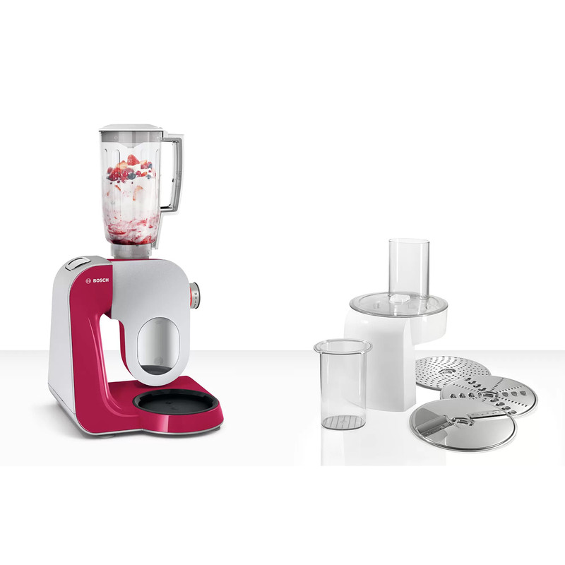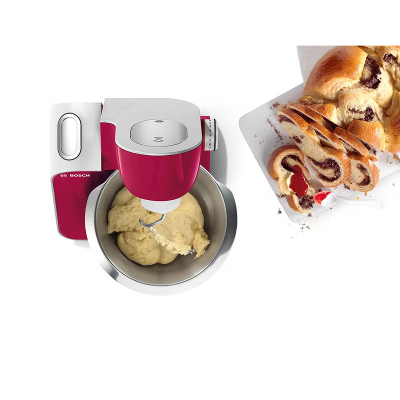 ماشین آشپزخانه بوش مدل MUM58420 با توان 1000 وات دستگاهی حرفه ای و کاربردی می باشد، رنگ قرمز در دستگاه و نیز ترکیب آن با رنگهای روشن و استیل ظاهر زیبایی به محصول داده است. ماشین آشپزخانه 58420 بوش دستگاهی همه کاره و بسیار کارآمد می باشد که می توان هر غذایی را به راحتی با این ماشین آشپزخانه آماده سازی کرد. ظرف اصلی آن مخصوص خمیرگیری و شیرینی پزی طراحی شده است. دیسک های رنده عرضه شده همراه این دستگاه دارای قابلیت ریز کردن مواد در اشکال مختلف هستند.پرههای همزن ماشین آشپزخانه MUM58420 برای حل کردن مواد سبک تا نسبتا خشک استفاده میشود. از اقلام جانبی آن می توان به انواع دیسک ریز و درشت، پارچ مخلوط کن با ظرفیت 1٫25 لیتر، سری های خمیرزن و همزن اشاره نمود. همچنین سرعت آن در 7 حالت مختلف قابل تنظیم است و از عملکرد لحظه ای یا پالس هم برخوردار می باشد. پایههای ضد لغزش در نظر گرفتهشده زیر ماشین آشپزخانه، مانع از حرکت، لغزش و جابجایی دستگاه میشود.