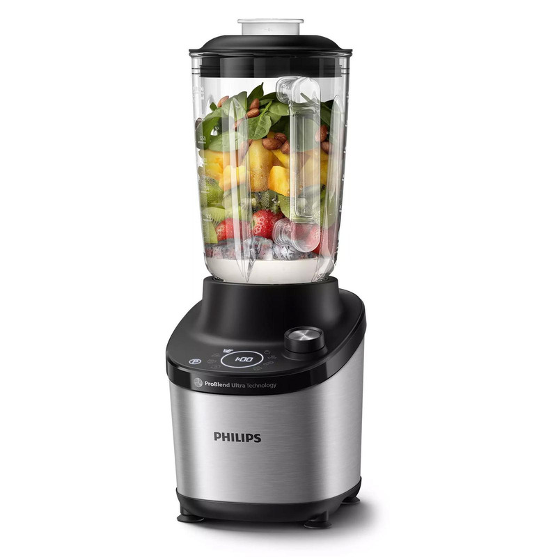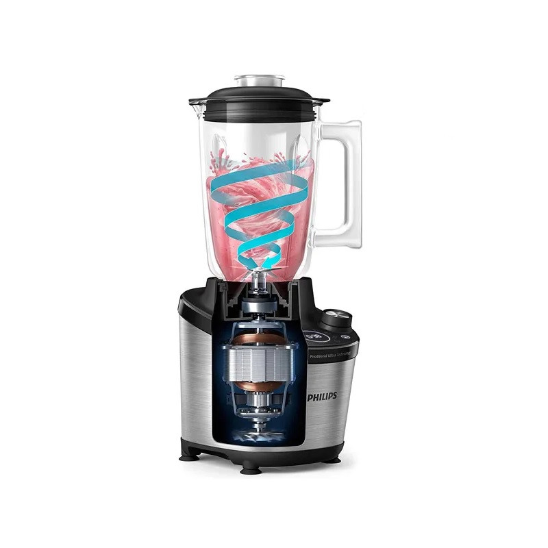 | سایر توضیحات | مخلوط کن فوق پیشرفته فیلیپس، موتور پر قدرت با توان 1500 وات، پارچ مخلوط کن از جنس شیشه با گنجایش 2 لیتر، تیغه منحصربفرد فیلیپس ProBlend Ultra که براحتی سخت ترین مواد را میکس میکند، دارای برنامه های مختلف شامل: اسموتی، کره مغزیجات، دسر، سوپ، تهیه سس ها، یخ خرد کن و شستشوی خودکار، قابلیت میکس مواد غذایی گرم، قابلیت تهیه انواع اسموتی ها، کوکتل ها، شیک ها و…..، قابلیت شستشوی لوازم جانبی در ماشین ظرفشویی، لازم به ذکر است جهت شستشوی آسان پارچ بعد از استفاده میتوانید داخل پارچ را از آب پر کرده و چند قطره مایع ظرفشویی داخل آب ریخته و سپس از برنامه شستشوی خودکار استفاده کنید تا براحتی پارچ مخلوط کن تمیز شود، طراحی و مهندسی محصول در کشور هلند مونتاژ نهایی در کشور چین |