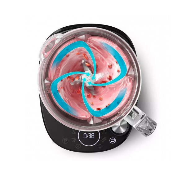 مخلوطکن فیلیپس مدل HR3760/00 یکی از پیشرفتهترین مدلهای این برند معتبر هلندی است که با طراحی مدرن، کیفیت ساخت بالا و قابلیتهای حرفهای، گزینهای عالی برای استفاده خانگی و حتی نیمهحرفهای محسوب میشود. این دستگاه به یک موتور قدرتمند ۱۴۰۰ وات مجهز شده که تیغهها را تا سرعت ۳۵,۰۰۰ دور در دقیقه به چرخش در میآورد و همین امر موجب میشود انواع میوهها، سبزیجات، دانههای یخ و مواد غذایی سخت بهراحتی و در زمان کوتاهی مخلوط یا پوره شوند. پارچ شیشهای بزرگ ۲ لیتری آن با طراحی مقاوم در برابر حرارت، امکان تهیه سوپهای داغ، نوشیدنیهای گرم و اسموتیهای خانوادهپسند را فراهم میکند. همچنین وجود فناوری ProBlend 6 3D با شش تیغه استیل ضدزنگ، عملکردی یکنواخت، دقیق و بدون تکهتکه شدن ناهمگون مواد را تضمین میکند. این فناوری با ایجاد یک جریان چرخشی سهبعدی در داخل پارچ، باعث میشود تا تمام مواد بهطور کامل خرد و ترکیب شوند. مدل HR3760/00 دارای برنامههای از پیش تنظیمشده برای اسموتی، خرد کردن یخ، و عملکرد Pulse است که کنترل آسانتر و نتیجهای حرفهایتر را در پی دارد. بدنه مقاوم با طراحی زیبا، پیچ تنظیم سرعت و پایههای ضد لغزش نیز از دیگر ویژگیهای کاربردی این مدل است. به طور کلی، اگر بهدنبال یک مخلوطکن قدرتمند، بادوام، شیک و چندکاره از برند معتبر فیلیپس هستید، مدل HR3760/00 میتواند یکی از بهترین انتخابهای شما باشد.برای خرید این محصول میتوانید به فروشگاه اینترنتی گالریا مراجعه کنید