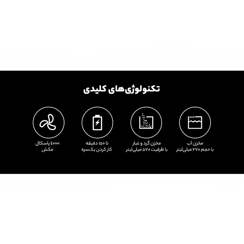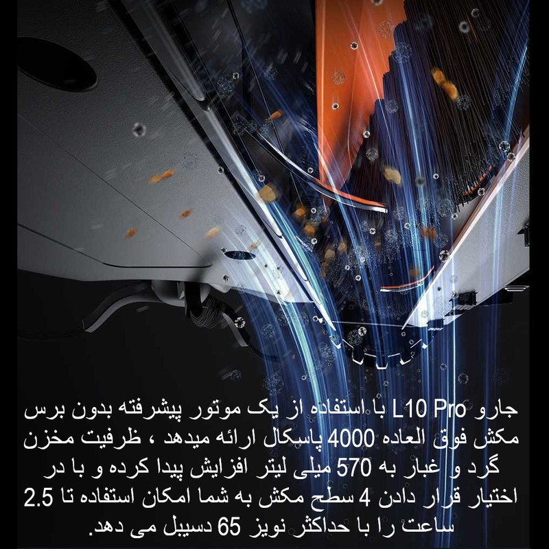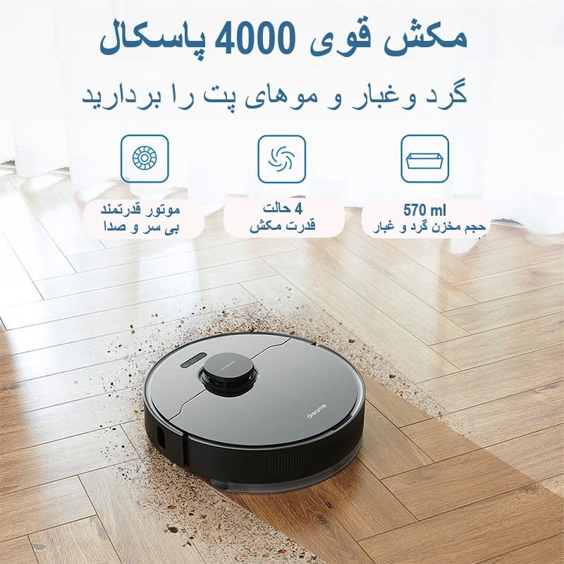 | سایر توضیحات | قدرت مکش فوق العاده 4000pa مکش قویپیمایش عالی LiDAR و اجتناب از موانع هوشمندپشتیبانی از اپلیکیشن برای کنترل روشن / خاموش، شارژ مجدد، کنترل صدا، تنظیم حالت تمیز کردنقابلیت تمیز کردن منطقه خاص و تنظیم منطقه ممنوع قابلیت ایجاد دیوار مجازیناوبری دقیق و نقشه برداری محیط سه بعدی تشخیص و اجتناب از اشیاء بصورت هوشمندظرفیت باتری 5200 میلی آمپر ساعت است2.5 ساعت کار بدون وقفه حدود 250 متر سطح پوشش دهیقابلیت افزایش قدرت مکش خودکار روی فرش برای تمیزی بهترقابلیت نقشه برداری سه پلان (برای خانه هایی که چند طبقه هست )سنسور های جانبی با قابلیت ضد برخورد با اجسامسنسور پیشگیری از سقوط پرتگاهعبور از موانع تا 2 سانتی مترقابلیت تمیز کردن زیر اجسام با ارتقاع مناسب مثل مبل تختخواب قابلیت تمیز کردن لبه های دیواراستفاده از سیستم کاهش نویز پنچ گانه4 حالت مکش برای برآوردن نیازهای مختلف تمیز کردن570 میلی لیتر مخزن گرد و غبار مخزن آب 270 میلی لیتر ، کنترل هوشمند آبکنترل صوتی الکسادارای قابلیت شارژ خودکار و از سرگیری تمیز کردن |