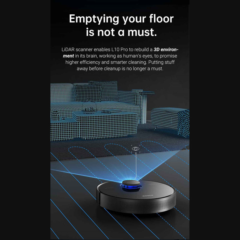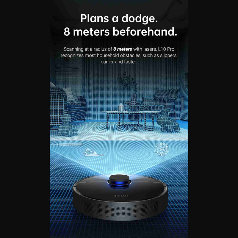 شرکت دریم معتقد است که در مدل L10 Pro از حسگر سه بعدی با دقت بالا استفاده کرده است. این حسگرهای لیزری مجزا در جلوی ربات قرار گرفته که اشیا را شناسایی کرده و از آنها دور میزند. استفاده از لیزر باعث بهبود دقت و ایجاد میدان دید وسیع میشود. در حقیقت این نوع بهتر از سنسور دوربیندار است زیرا به نور متکی نیستند. این حسگرهای سیگنال را با سرعتی بسیار سریع انتقال میدهند تا محیط اطراف خود را از وجود مانع شناسایی کنند. با این اوصاف دیگر نیازی نیست شما نگران خرابی مبل یا وسایل گرانقیمت خانه خود باشید؛ زیرا این دستگاه به انداز کافی حواس جمع است.