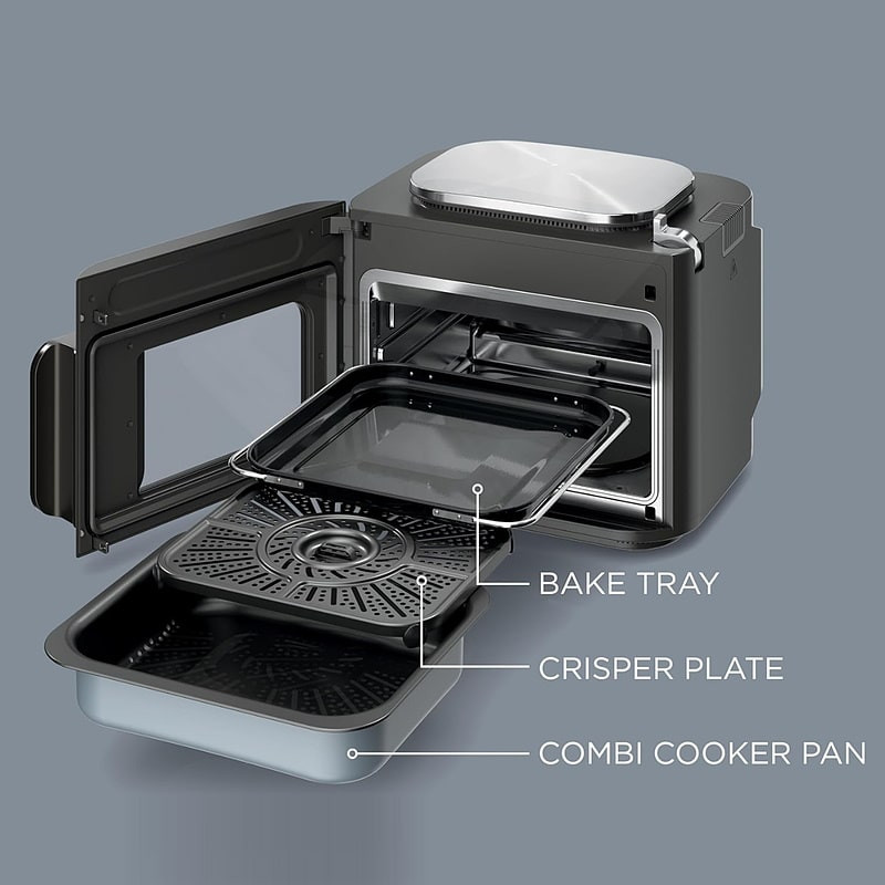 | سایر اقلام همراه محصول | تابه ترکیبی، سینی پخت، سینی ترد، و کتاب دستور پخت با 20 آشپز ایجاد شده دستور العمل ها و نمودارهای آشپزی |