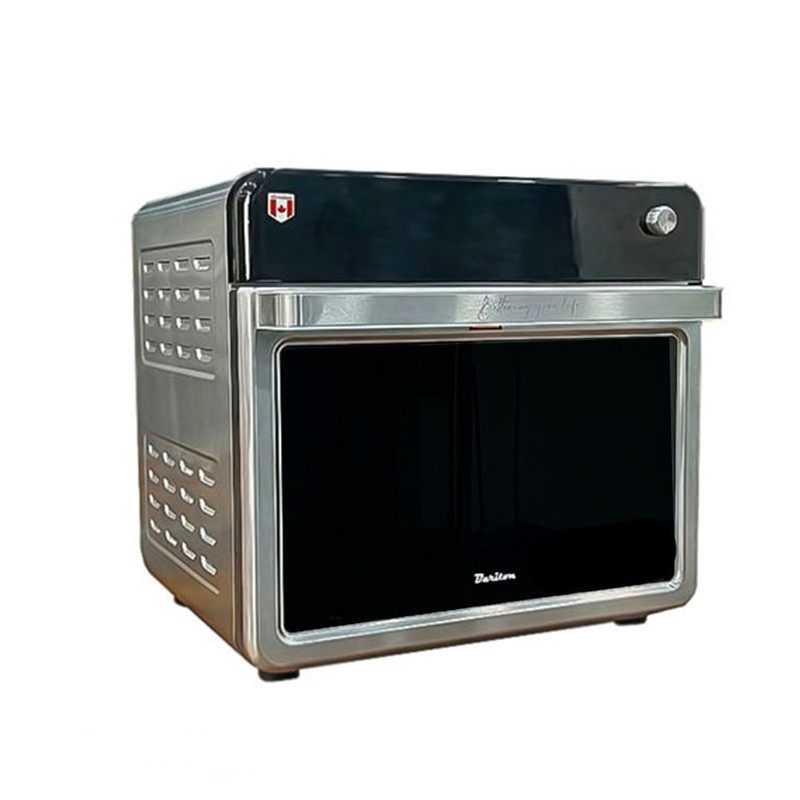 آون توستر و سرخ کن بدون روغن باریتون مدل BAO-342100SD دارای طراحی خاص و جذاب است وترکیب رنگ مشکی، نقرهای و استفاده از شیشه توانسته ظاهر این محصول را خاص و بی نقص کند. نیمه بالایی دستگاه را پنل تنظیمات دیجیتال و نیمه پایین را درب شیشهای آن تشکیل داده است و جنس بدنه این محصول از استیل ضخیم استفاده شده که مقاومت این دستگاه را در برابر ضربه، خط و خش را افزایش داده است. سرخ کردن بدون روغن (سیب زمینی مرغ وسبزیجات و... )و پخت کیک و شیرینی،پیتزا،کبابی کردن،تست کردن و گرم کردن وخشک کردن میوه و سبزیجات و یخ زدایی و تهیه ماست