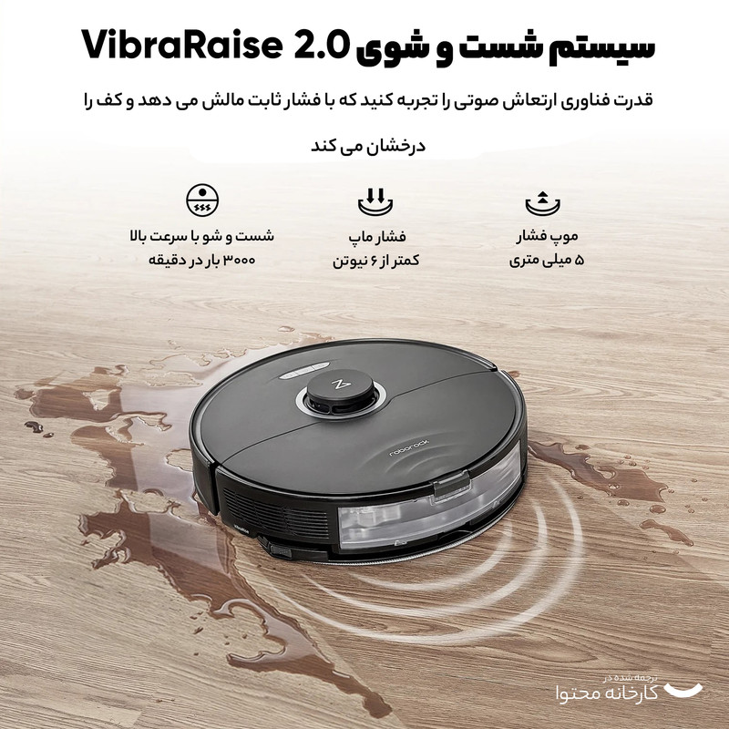 | سایر توضیحات | ابعاد: 9.65 × 35 × 35.3 سانتی مترقدرت موتور: 68 واتقدرت مکش: 6000 پاسکال ( 32000 واقعی )دارای تراشه قدرتمند Qualcomm® APQ8053مخزن گرد و غبار: 470 میلی لیترمخزن آب: 300 میلی لیتردارای برس کناری 5 پرهدارای سنسور مخصوصی است که می تواند با کمک امواج مافوق صوت فرش را تشخیص داده و برای جلوگیری از خیس شدن فرش، پد طی کشی خود را بالا ببرداستفاده از تکنولوژی طی کشی لرزشی بصورت 3000 بار لرزش در دقیقهجهتیابی: سنسورهای فوق پیشرفته 3D Structured light و لیزر جدید PreciSense® LiDAR Navigationبهره مندی از هوش مصنوعی ReactiveAI 2.0نوع فیلتر: (E11) HEPAدارای برس لاستیکی شناور ( مناسب برای افرادی که حیوانات خانگی دارند )دارای قفل کودکقابلیت نقشه برداری در 4 سطحسنسور تشخیص فرشسنسور دیوارسنسور ارتفاعقابلیت عبور تا 2 سانت ارتفاعپشتیبانی از سیستم صوتی الکسا و دستیار گوگل ( alexa & google assistant )ظرفیت باتری: 5200 میلی آمپر ساعتوزن: 4.65 کیلوگرم |