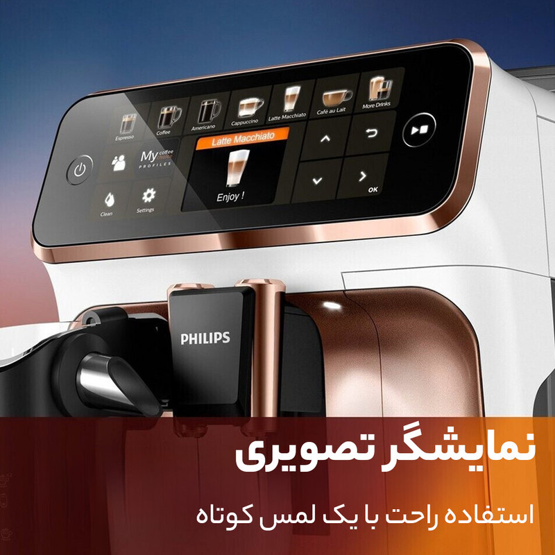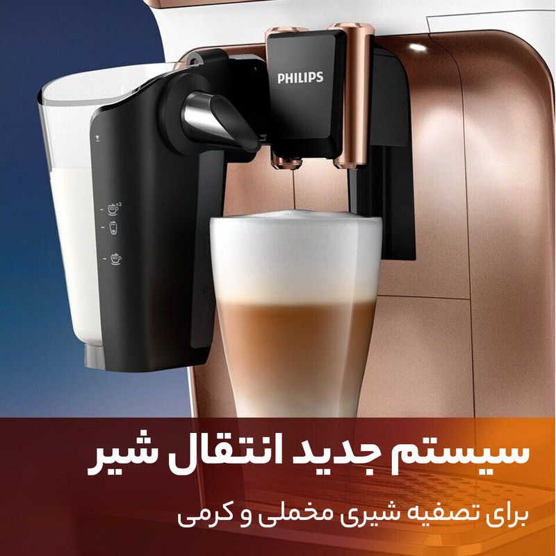 | سایر توضیحات | قهوه ساز تمام اتومات فیلیپس، قابلیت تهیه انواع قهوه: اسپرسو، اسپرسو لانگو، ریسترتو، قهوه، کافه کرما،لاته، آمریکانو، کاپوچینو، لاته ماچیاتو و ….، توان مصرفی 1500 وات، پمپ بخار حرفه ای با توان 15 بار ، دارای مخزن دان قهوه با گنجایش 275 گرم دان قهوه، سیستم نظافت با قابلیت رسوب زدایی، تمیزکنندگی، و شستشو خودکار، مجهز به سیستم Aroma Extract که با تعادل بهینه بین دمای دم آوری و عطر قهوه با نگهداری دمای آب بین 90 تا 98 درجه سانتیگراد باعث حفظ کامل عطر و طعم قهوه میشود، مخزن آب با گنجایش 1.8 لیتر، مخزن شیر با گنجایش 0.26 لیتر، طراحی و مهندسی محصول در کشور ایتالیا و مونتاژ نهایی در کشور رومانی، میزان آسیاب قهوه در 12 درجه قابل تنظیم، آسیاب با تیغه سرامیکی، دارای صفحه گرم کن فنجان، تکنولوژی Aroma Extract: این اسپرسوساز از تکنولوژی Aroma Extract بهره می برد که قابلیت استخراج کامل قهوه را دارد. این تکنولوژی با تغییر فشار و دما در هنگام استخراج قهوه، اجازه می دهد تا کامل ترین طعم و اسانس قهوه استخراج شود، قابلیت تنظیم دما و حجم قهوه: با این اسپرسوساز، شما می توانید دمای آب و حجم قهوه را با دقت تنظیم کنید. این ویژگی به شما امکان می دهد قهوه را با سلیقه خود تهیه نمایید و لذت ببرید. دمای مناسب برای تهیه قهوه توسط این دستگاه حدود 90-95 درجه سانتیگراد می باشد. |