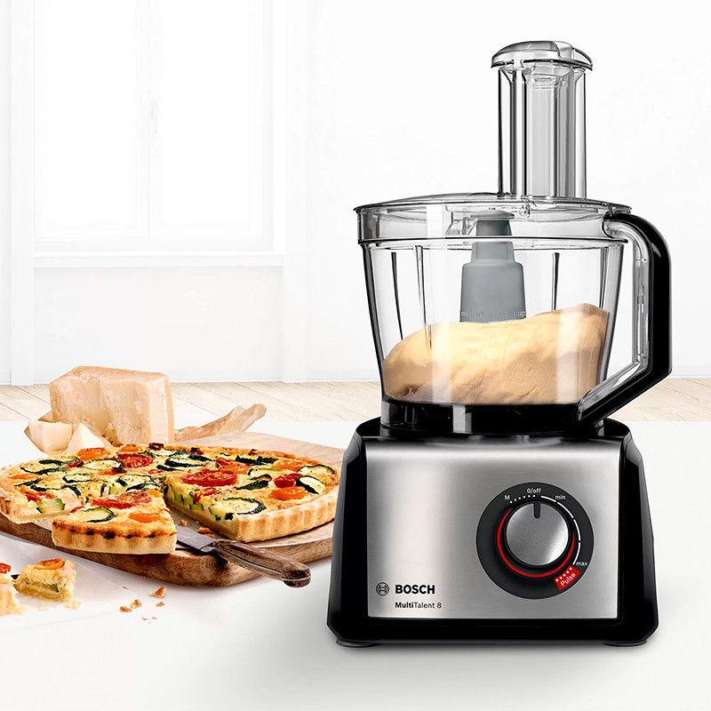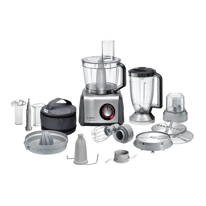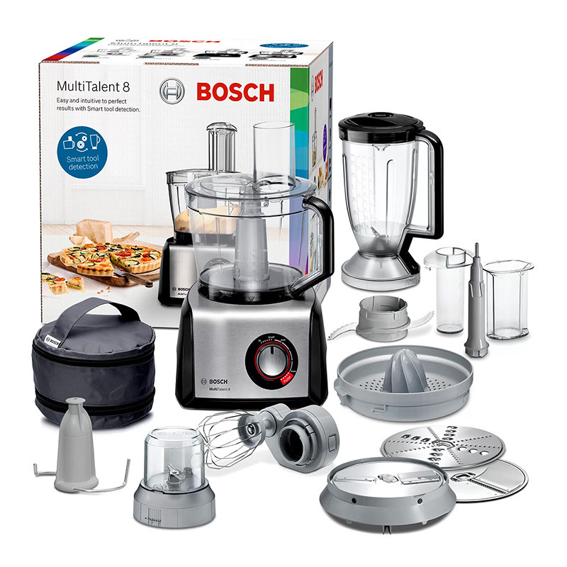| سایر ویژگیها | غذاساز 50 کاره از سری Multi Talent 8 (بالاترین سری غذاسازهای شرکت بوش)مجهز به جدیدترین تکنولوژی ساخت تیغه شرکت بوش ( Supercut blade ) برای خرد کردن ایده آل و بی نقصمجهز به سنسور تشخیص سرعت برای ابزارهای مختلف ( Smart Tool Detection ) بیشترین ظرفیت کاسه بین غذاساز های بوش ( XXL Bowl )قسمت های پلاستیکی (در تماس با مواد غذایی) فاقد BPA میباشند دیسک های رنده دو طرفه با سایز و برش متفاوت دارای خردکن کوچک (آسیاب) - Mini Copper سیستم ایمنی دو گانهساخت اسلونی با کیفیت بالا |