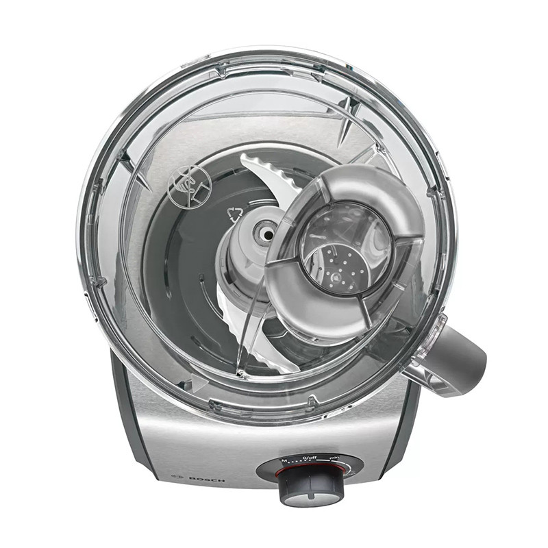 مشخصات فنی توان موتور: ۱۲۵۰ وات ظرفیت کاسه مخلوطکن: ۳.۹ لیتر ظرفیت کاسه مخلوطکن برای خمیر: حداکثر ۱.۵ کیلوگرم ظرفیت پارچ مخلوطکن: ۱.۵ لیتر تنظیمات سرعت: متغیر با عملکرد پالس ابعاد دستگاه: ۴۳۰ × ۲۵۰ × ۳۰۰ میلیمتر وزن خالص: ۵.۶ کیلوگرم تعداد عملکردها: بیش از ۵۰ عملکرد مختلف ? اقلام همراه غذاساز MC812S844 با مجموعهای از لوازم جانبی کاربردی ارائه میشود که شامل: کاسه مخلوطکن پلاستیکی پارچ مخلوطکن پلاستیکی دیسک برش و رنده معکوس (ضخیم/نازک و درشت/ریز) دیسک سیبزمینی سرخکرده همزن (ویسک) استیل ضدزنگ چاقوی چندمنظوره (MultiLevel6) همزن خمیر پلاستیکی آسیاب کوچک آبمیوهگیر مرکبات پوشش دیسک پوشش درب با فیلتر پوشش درب با قیف و فشاردهنده Home Appliances Global Website | Bosch ? ویژگیهای برجسته موتور قدرتمند ۱۲۵۰ وات: برای پردازش حجم بالا و مواد غذایی سخت بیش از ۵۰ عملکرد: شامل خردکردن، رندهکردن، آسیاب، مخلوطکردن و بیشتر کاسه XXL با ظرفیت ۳.۹ لیتر: مناسب برای مقادیر زیاد تنظیمات فردی: سرعت متغیر و عملکرد پالس برای نتایج عالی SmartStorage: امکان ذخیره آسان لوازم جانبی در کاسه مخلوطکن طراحی جمعوجور: برای ذخیرهسازی آسان لوازم جانبی قابل شستشو در ماشین ظرفشویی: برای تمیزکاری راحت .جمعبندی غذاساز بوش مدل MC812S844 با طراحی جمعوجور و عملکرد بالا، گزینهای ایدهآل برای آشپزخانههای مدرن محسوب میشود. این دستگاه با توان ۱۲۵۰ وات و ظرفیت کاسه ۳.۹ لیتر، برای انجام بیش از ۵۰ عملکرد مختلف طراحی شده است. با لوازم جانبی متنوع و قابلیتهای متعدد، این غذاساز میتواند به شما در تهیه انواع غذاها و نوشیدنیها کمک کند.