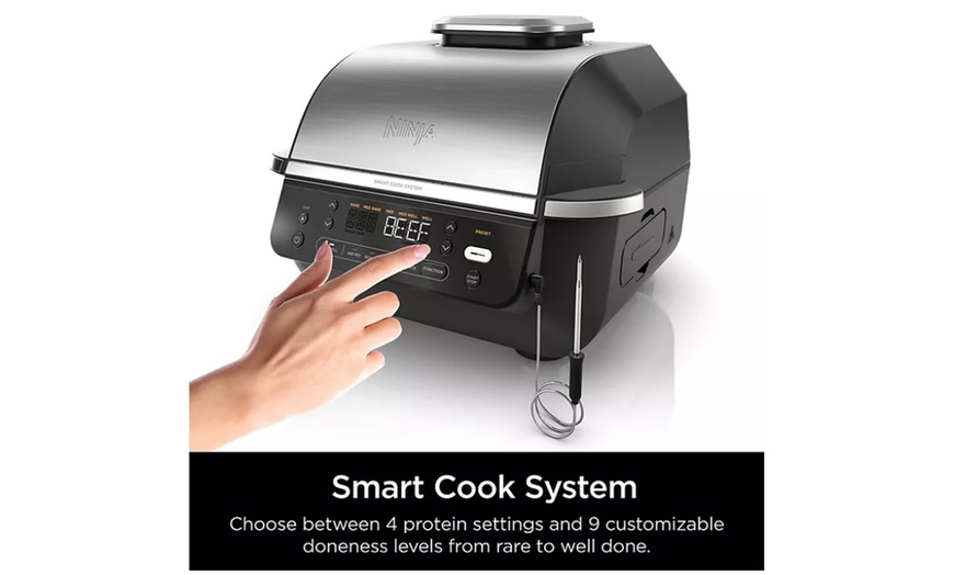 سرخکن و گریل نینجا EG351 با ظرفیت ۵.۷ لیتر و توان ۱۷۶۰ وات، دارای ۵ عملکرد (گریل، سرخکن بدون روغن، پخت، برشتهسازی و خشککردن) است. با فناوری Cyclonic Air گرما را یکنواخت پخش میکند و دارای پروب دیجیتال دما و سیستم کاهش دود میباشد.