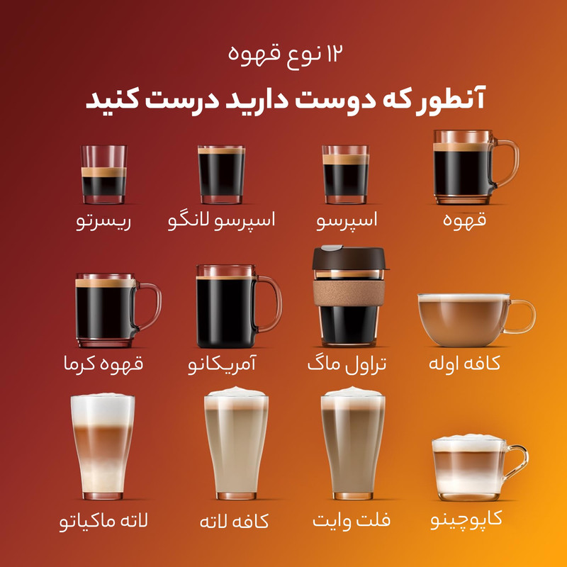 | مشخصات فنی اسپرسو ساز | 5 حالت قدرت عطر قهوه / 12 حالت آسیاب / قابلیت تنظیم میزان قهوه و شیر / Pre-Brew Aroma / پروفایلهای کاربری: 4 پروفایل + مهمان / تنظیم دما در 3 حالت مختلف / تنوع نوشیدنیها: اسپرسو / قهوه / آمریکانو / کاپوچینو / لاته ماکیاتو / فلت وایت / کافه او له/ کافه لاته / کافه کرما / ریسترتو / اسپرسو لانگو / شیر فومدار / آب داغ / امکان استفاده از پودر قهوه / قابلیت تهیه دو فنجان قهوه به طور همزمان / brew group جداشونده / رسوبزدایی خودکار / قاشق اندازهگیری / نوار تست سختی آب/ فیلتر AquaClean / لوله گریس / ولتاژ: 230 ولت / طول کابل: 100 سانتیمتر / فرکانس: 50 هرتز / ظرفیت مخزن شیر: 0.26 لیتر / ظرفیت مخزن زباله: 12 سروینگ / ظرفیت مخزن آب: 1.8 لیتر / ظرفیت مخزن دانههای قهوه: 275 گرم / دسترسی به مخزن زباله: از جلو / دسترسی به مخزن آب: از جلو / فشار پمپ: 15 بار / قابلیت تنظیم ارتفاع نازل : 85 تا 145 میلیمتر / LatteGo / سهولت در تمیز کردن و نگهداری: سازگار با فیلتر AquaClean / قطعات قابل شستشو در ماشین ظرفشویی: سینی چکه، LatteGo / نمایشگر TFT / |