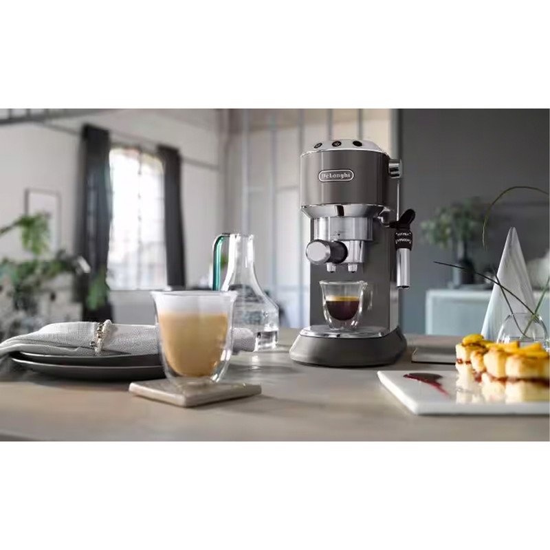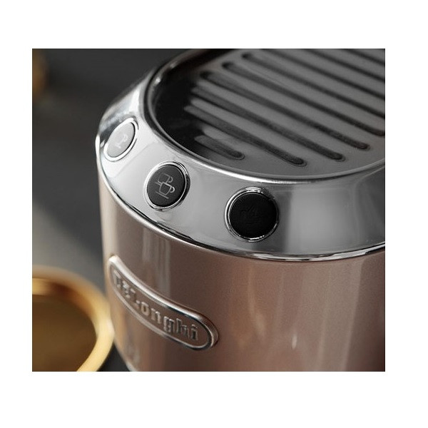 اسپرسو ساز دلونگی مدل ec785.bg بدنهای از جنس استیل و ۴.۳۰ سانتیمتر ارتفاع، ۳۳ سانتیمتر عمق و ۱۹.۹ سانتیمتر عرض دارد؛ بنابراین کمترین فضای ممکن را به خود اختصاص میدهد و برای پوشش سلیقههای مختلف هم در سه رنگ بژ، نوک مدادی و خاکستری به بازار عرضه شده است. سینی چکه گیر تعبیه شده در محصول هماهنگی ظریفی با کاپ وارمر سقف آن دارد؛ بهعلاوه در صورت تمایل میتوان سینی را از دستگاه خارج کرد و لیوانهایی با ارتفاع ۱۲ سانتیمتر را هم به صورت مستقیم زیر پرتافیلتر قرار داد. در بخش پشتی قهوه ساز دلونگی هم مخزن ۱.۱ لیتری آب که به کمک آن میتوان ۸ تا ۱۰ فنجان نوشیدنی تهیه کرد به زیبایی هر چه تمامتر قرار گرفته است و ظرافت و کارایی دستگاه را به اوج خود میرساند.